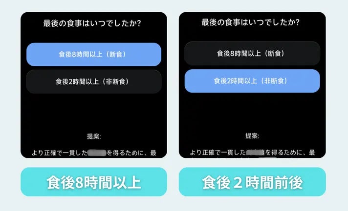 ※この製品は医療機器ではありません。この製品が提供するサービスは、病気や病状の診断、治癒を目的としたものではありません。モニタリング データとしての結果は参考用であり、診断の根拠として使用しないでください。この製品は診断前のツールであり、資格のある医療専門家による診断に代わるものではありません。不快感を感じた場合は、すぐに医師の診察を受けてください。
