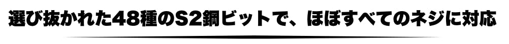 ビットはただ多ければいいわけではありません。本製品に含まれる48種類のビットは、家庭用からプロの現場まで幅広く使われるネジ形状に厳選されています。