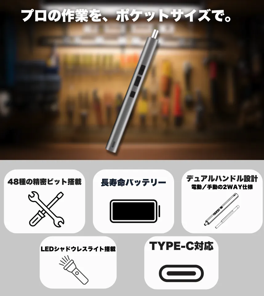 あなたの手のひらに、すべてが揃ったプロ仕様の電動精密ツールがあったなら?