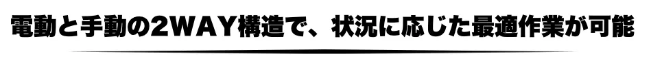 万が一電池が切れても、すぐ手動に切り替えて続行可能。作業を止める必要がありません。