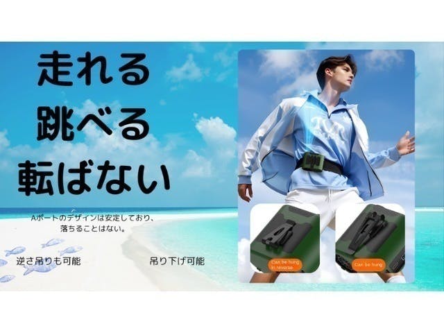 このウエストクリップファンは、多機能で便利なデザインが特徴であり、アウトドアの活動に最適なパートナーです。