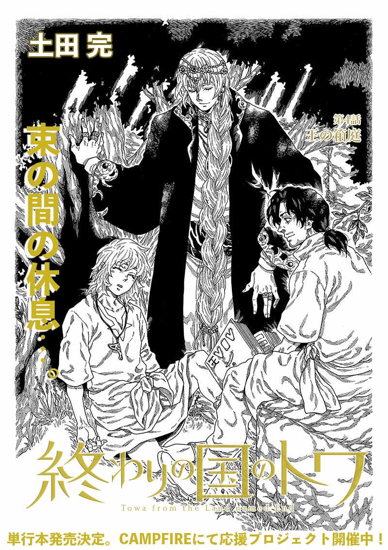 8/14(火)0時頃に、アプリのマンガハックにて「終わりの国のトワ」最新4話前編「王の箱庭」公開致します。