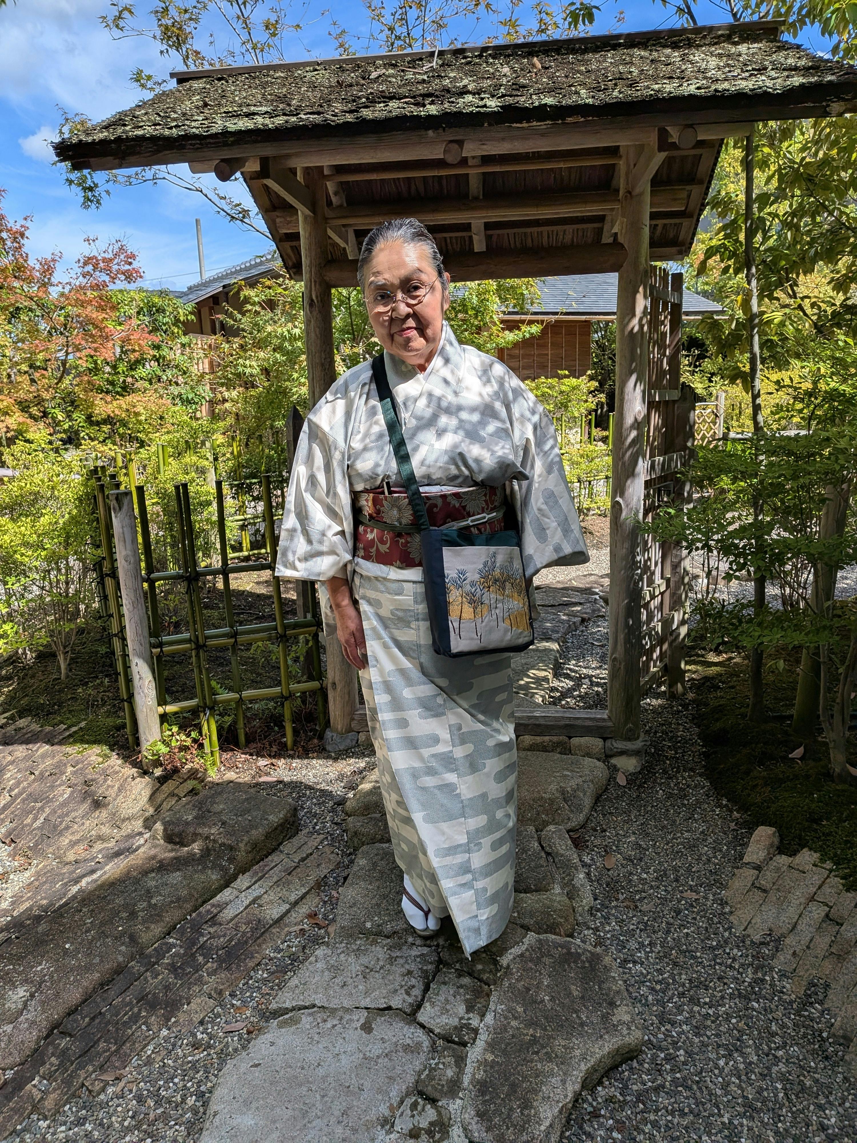 今日の茶会の着物は6月・9月だけ着る裏生地のない単衣の着物です。着物・帯は祖母のものです。