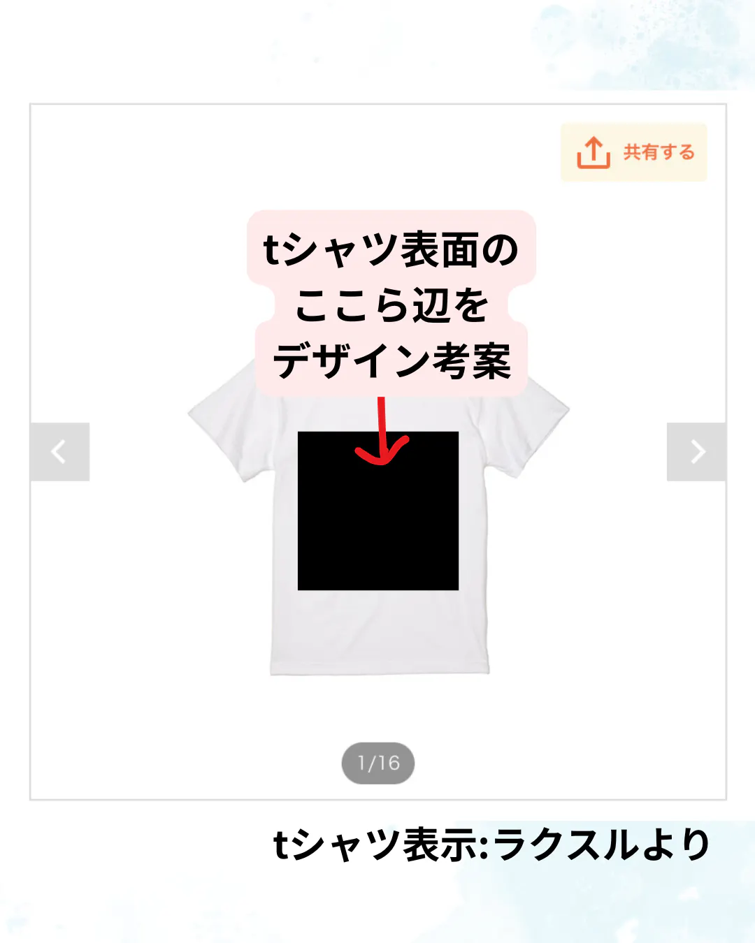 ※Tシャツにおいて、デザインを考案されたものの上に自身なりにリメイクすることを計画中。