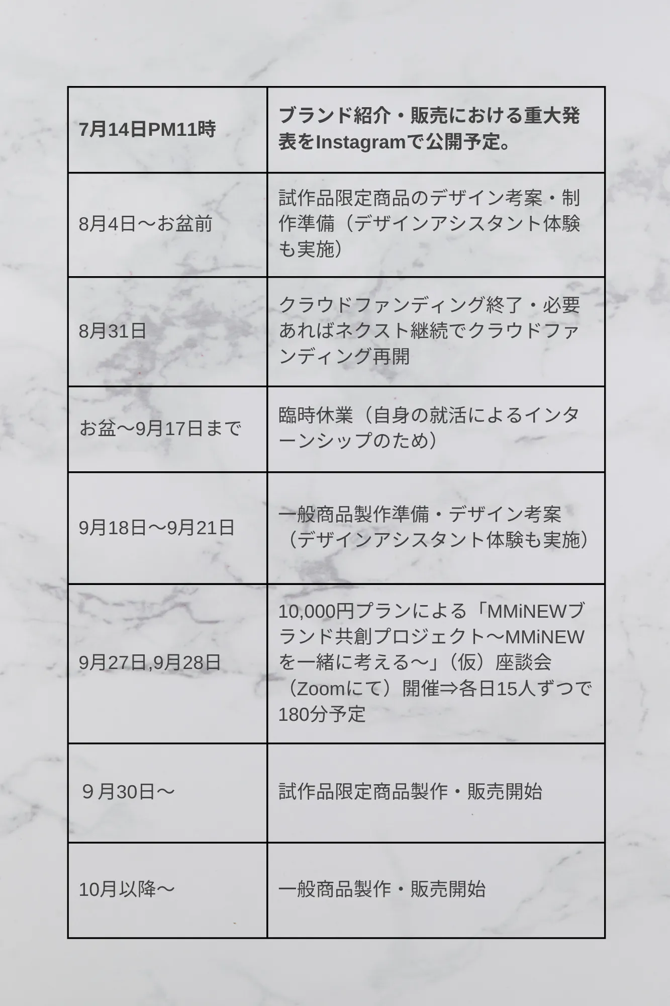 このプロジェクトでは、私たちが7月14日にSNSでこの新ブランドについて重大発表することから始め、