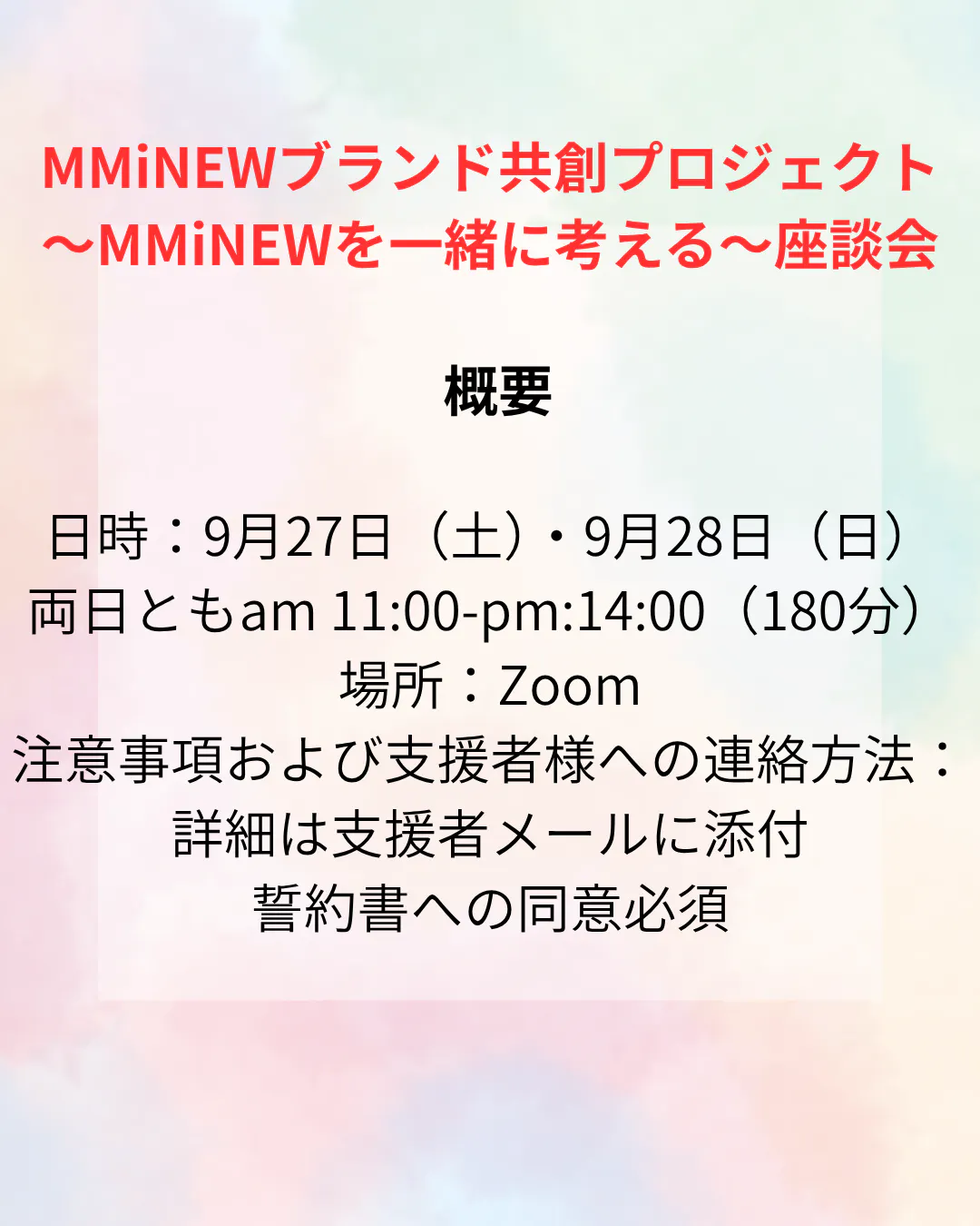 ⑤Zoomで開催される「MMiNEWブランド共創プロジェクト~MMiNEWを一緒に考える~」(仮)座談会に招待(180分予定)