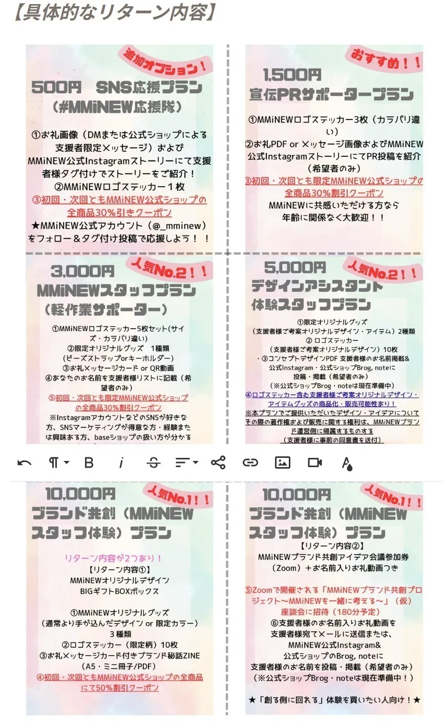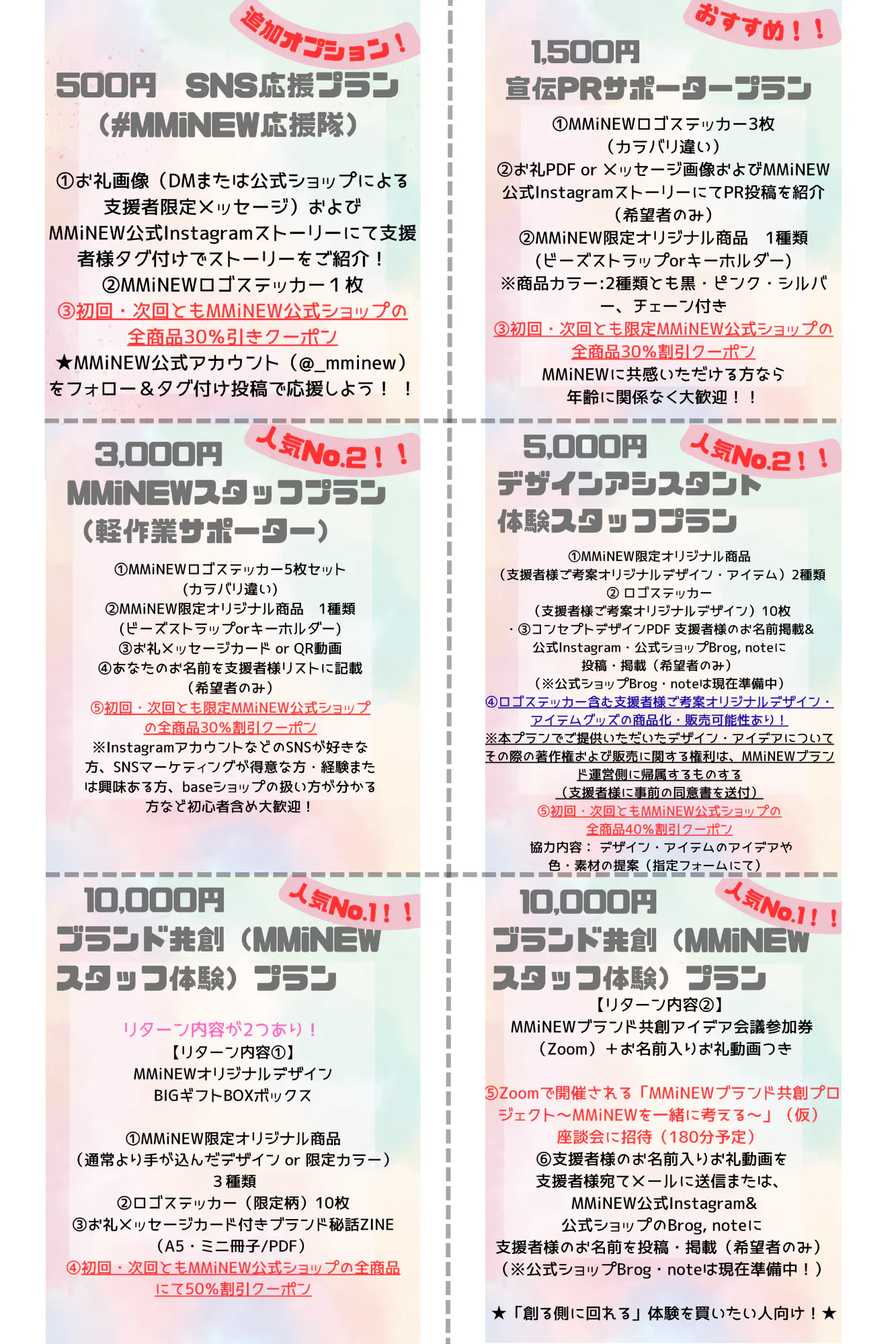 500円 SNS応援プラン(#MMiNEW応援隊)