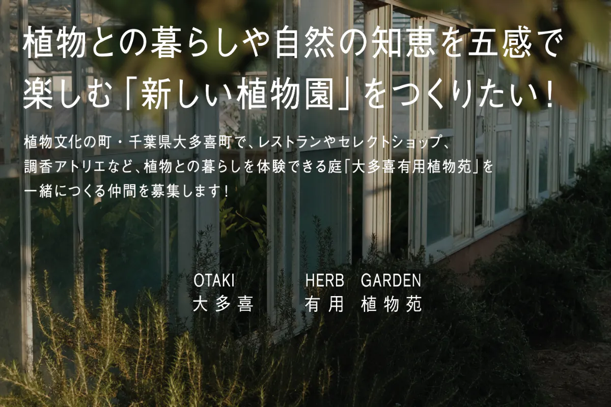 植物文化の町・千葉県大多喜町で、レストランやセレクトショップ、調香アトリエなど、植物との暮らしを体験できる庭「大多喜有用植物苑」を一緒につくる仲間を募集します!