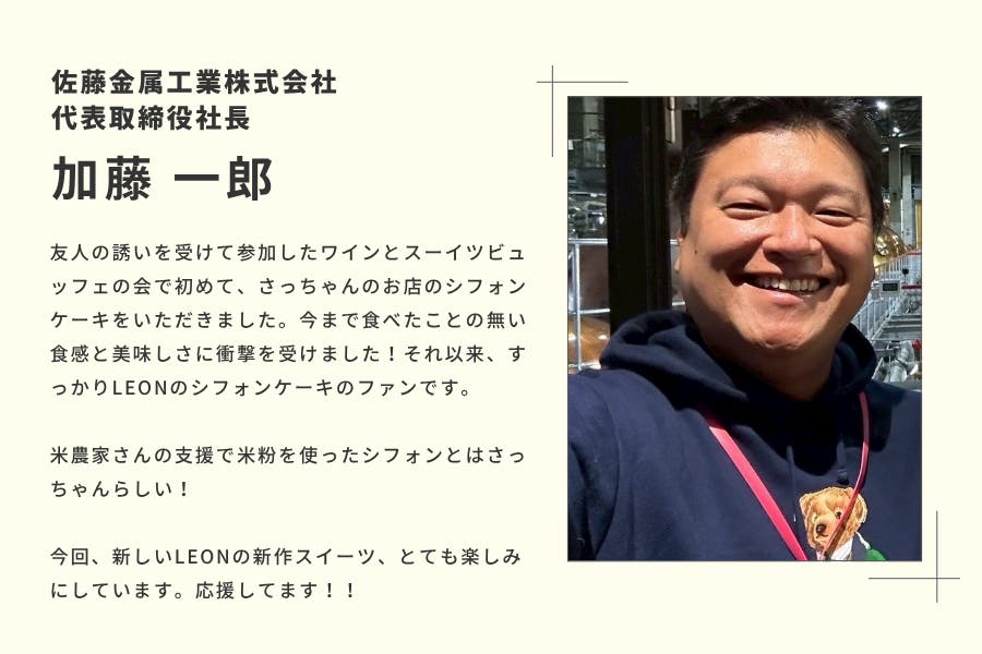 こんにちは。群馬県前橋市にある、シフォンケーキ専門店「LEON(レオン)」のオーナーパティシエ、岩下です。