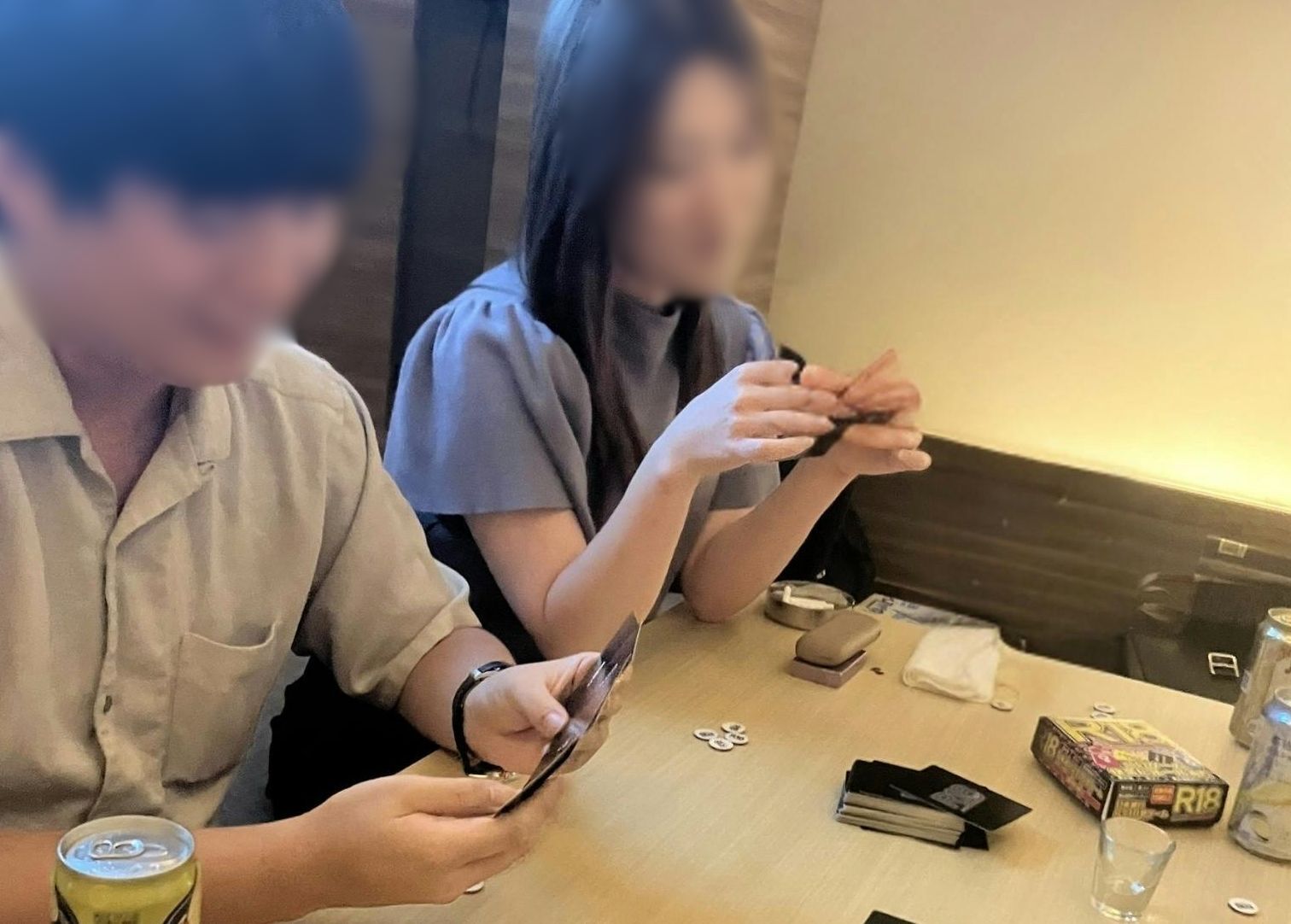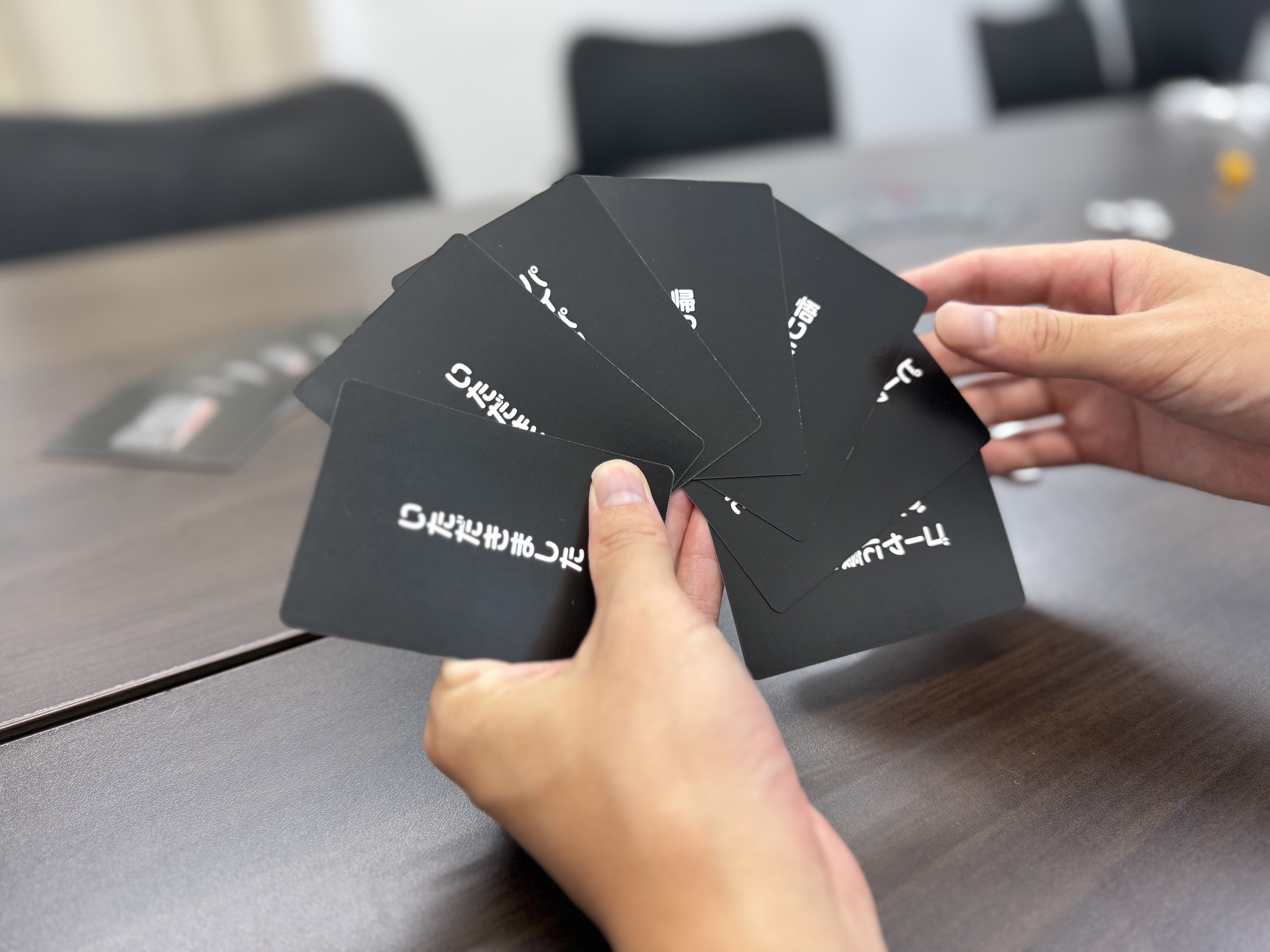 カードの質感を何度も確かめて、酒の席でも混ぜやすい材質を選定