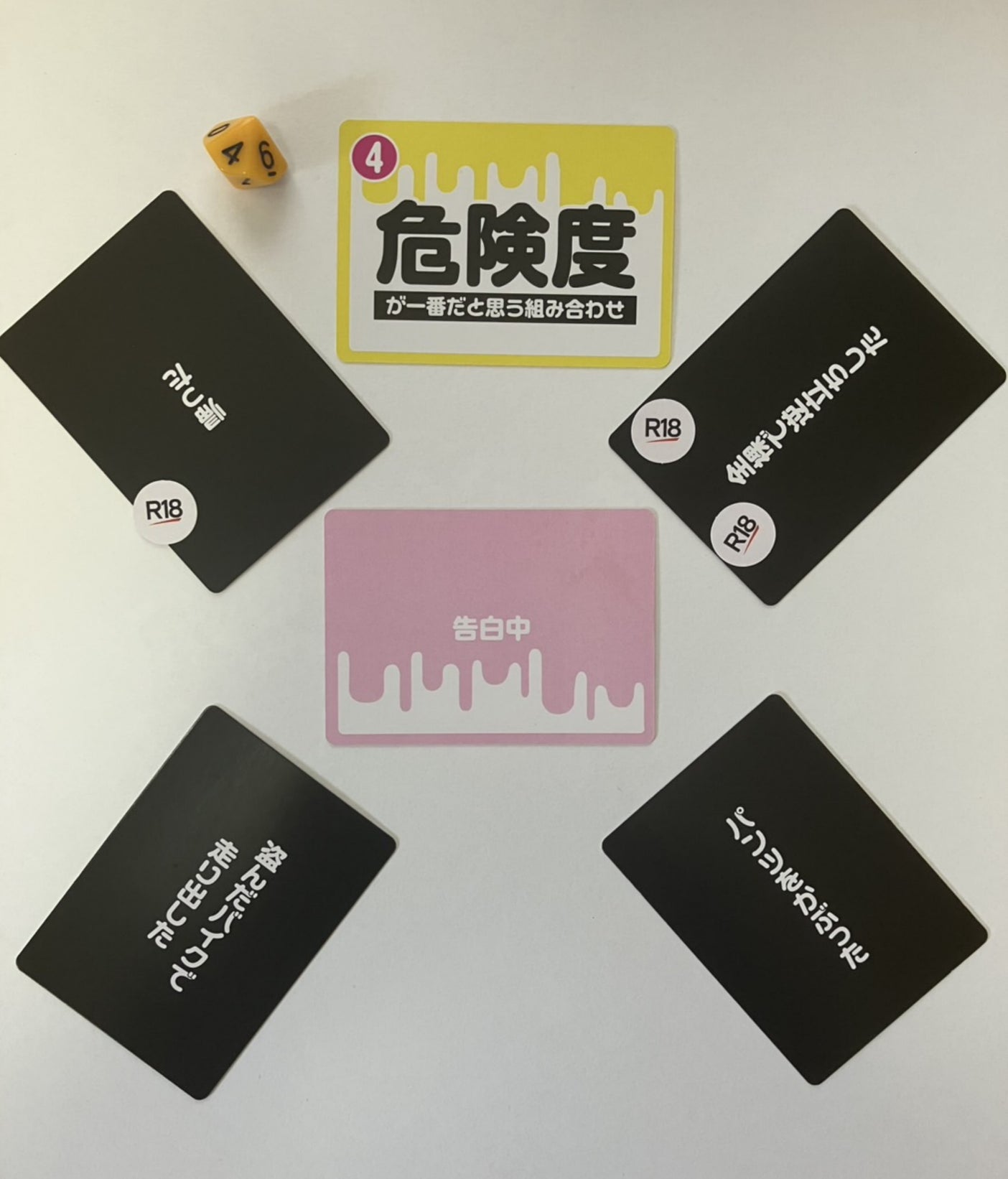 飲み会中の頭が回らない状態でも、ルールを説明・理解でき、笑いと遊びの中で自然に語り合えるように設計しました。