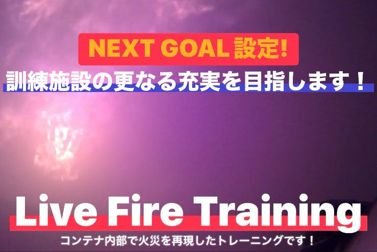 適切かつ効果的な現場活動の実現と共に殉職防止につながる有意義な訓練がライブファイヤートレーニングです!★現在、さらなる充実した訓練施設の整備に向けネクストゴールを設定しました!