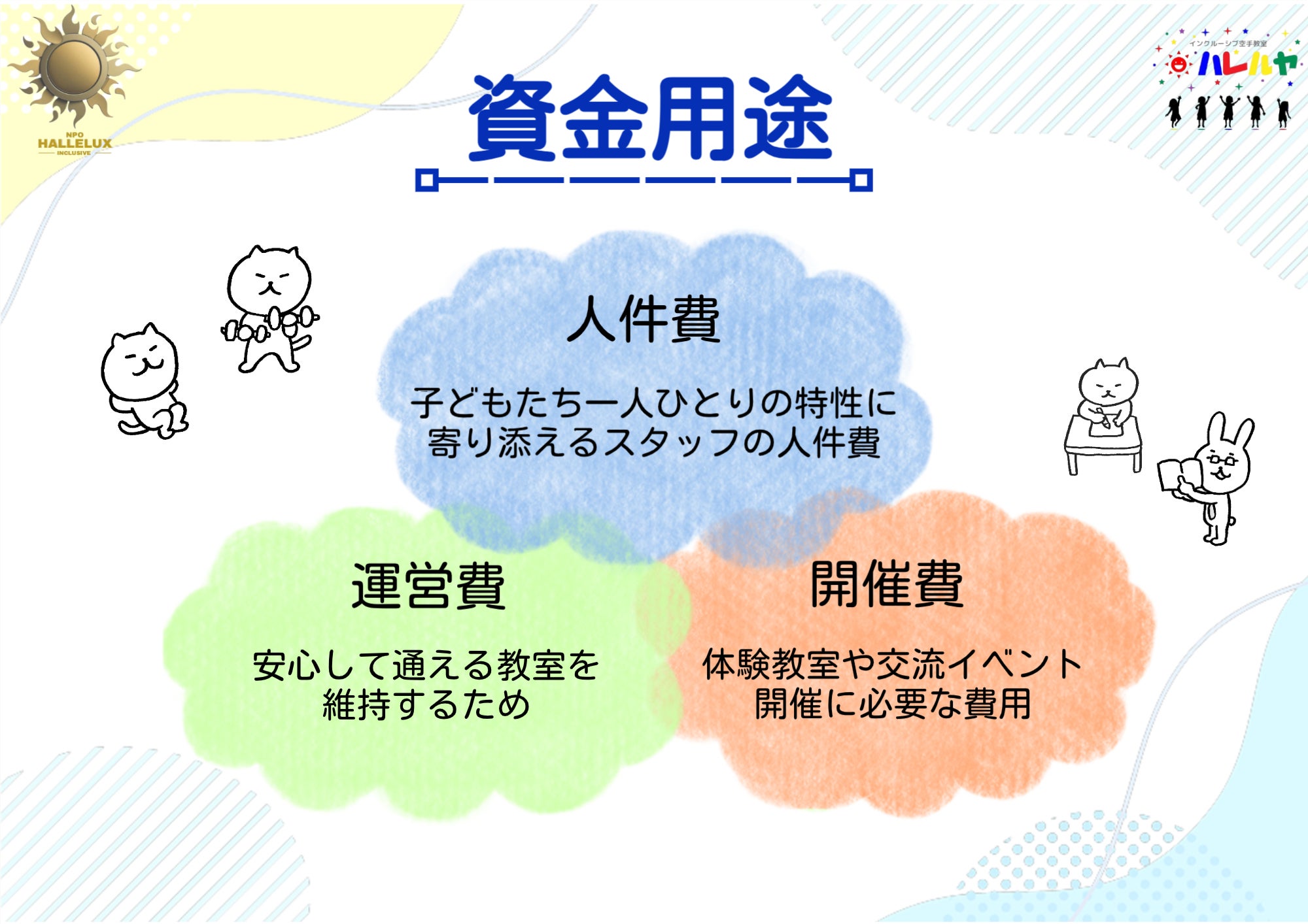 ・教室運営費(家賃・光熱費・備品等)の確保