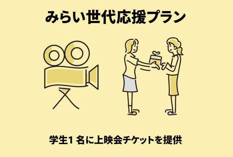 このプランでは、小中学生・高校生・学生1名分の上映イベント参加を支援いただけます。