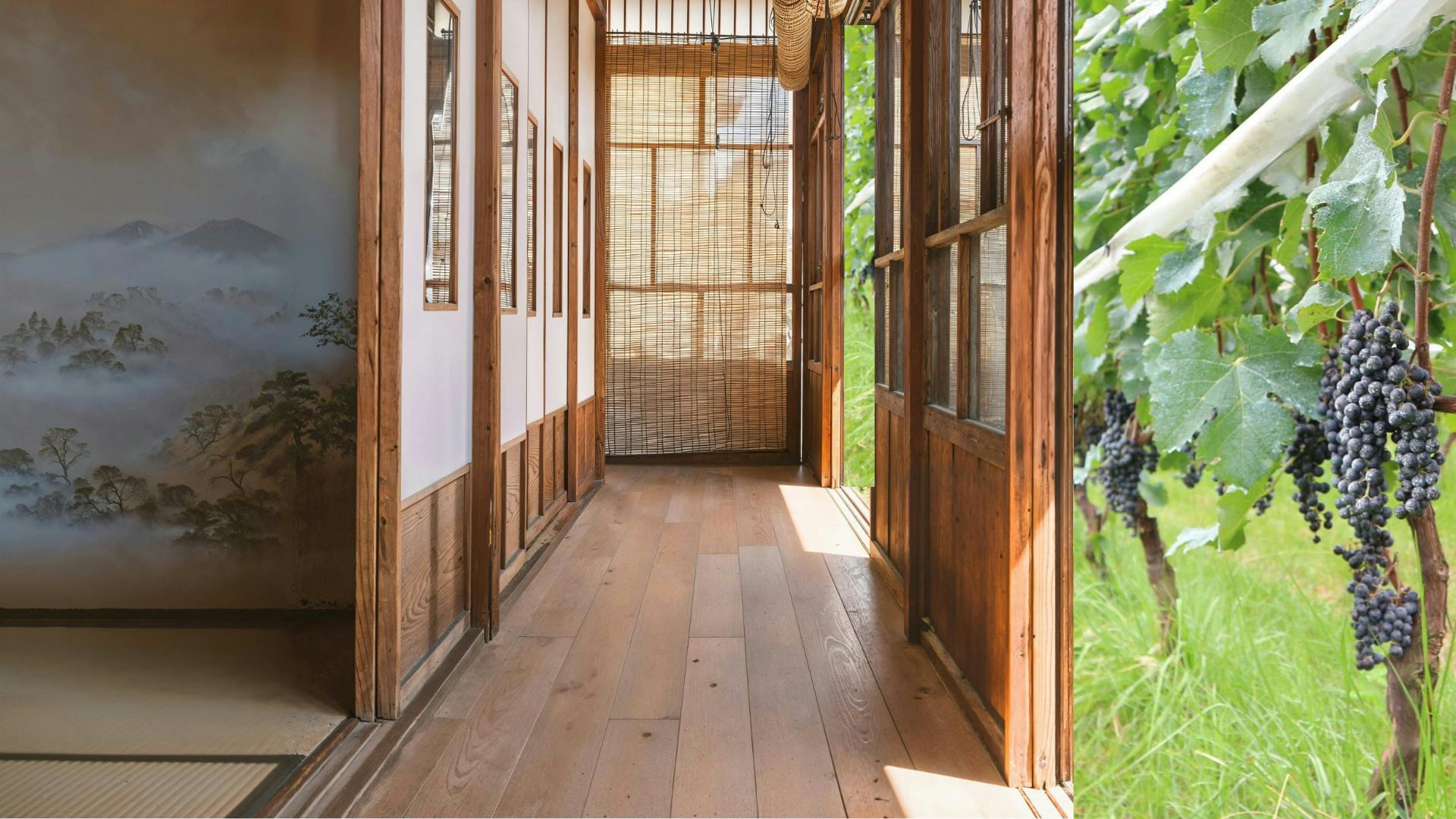 古民家の和室の雪見障子からはぶどうを含めた四季の移ろいを眺めながら宿泊できるという、ワイン好きにとって最高に贅沢な眺望が楽しめる宿泊施設を実現します!