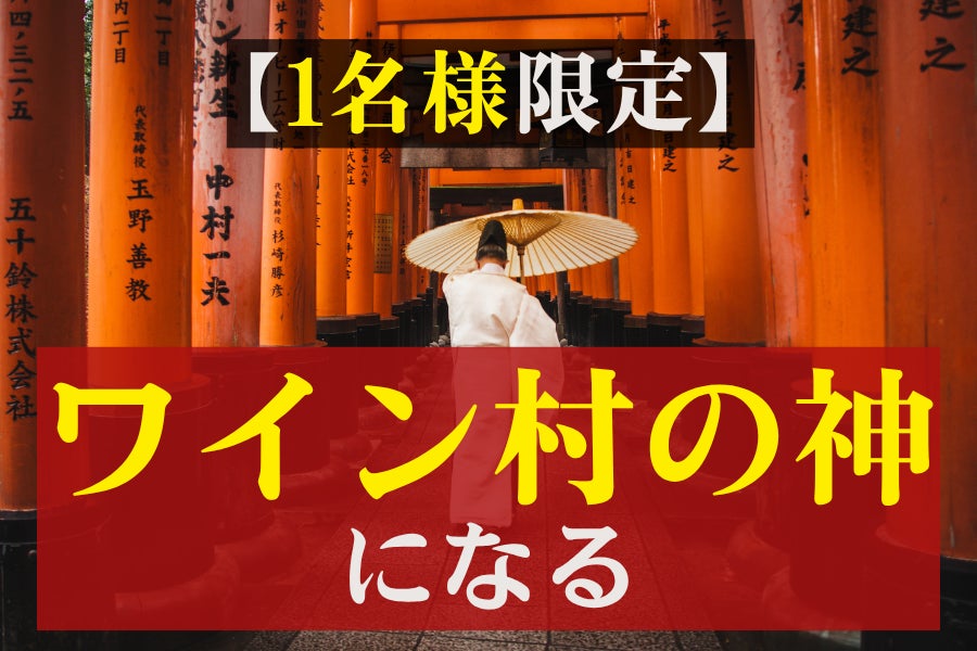 今回のクラウドファンディングで建立予定のワイン神社とワイン村公式サイトに『ワイン村唯一の守護神』としてあなたの名前が祀られ、ワイン村を訪れる村びとたちに拝まれるようになります!