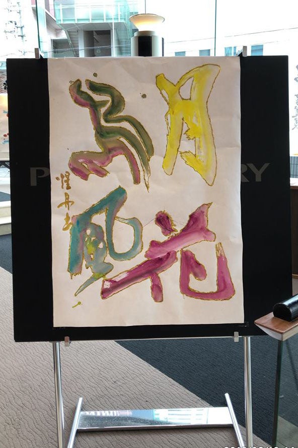 I am convinced that [color calligraphy] will be familiar to me from infants to the elderly, and will become an initiator as a new Japanese culture in Japan. Please have a look at the work and thank you for your support! Please lend force!