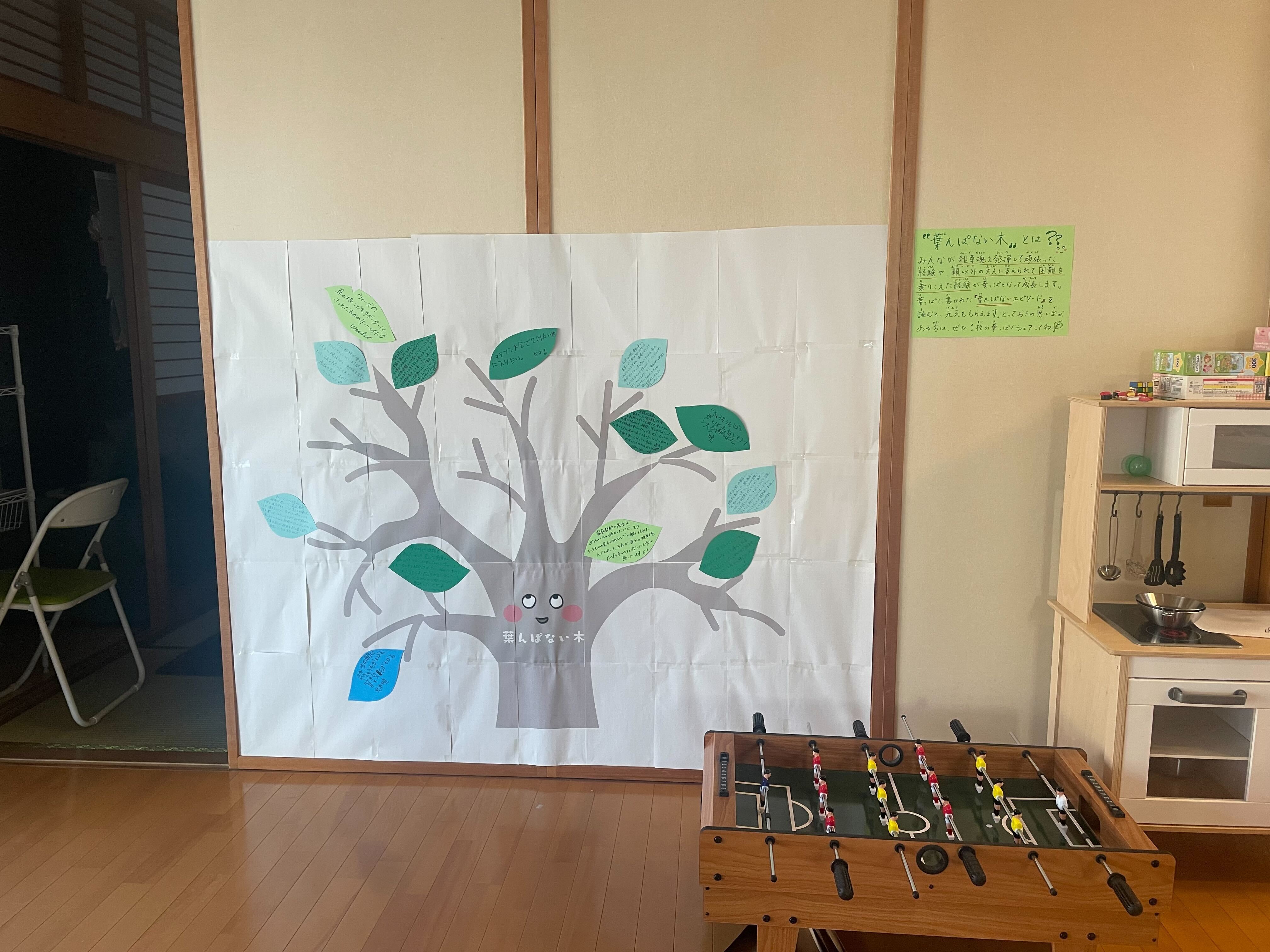 そして、投稿された葉んぱないエピソードは、“みちくさハウス”の『葉んぱない木』に展示★みんなの思いが葉っぱとなって、枯れ木に命を吹き込んでいきます開始時はまだ枝だけでしたが、今はこんな感じになってます!