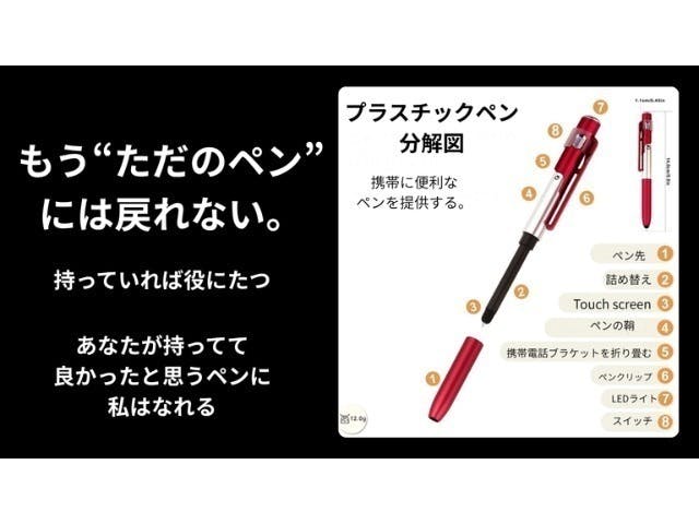 ・商品名:4in1多機能ボールペン/個数:1(プロジェクトでは5or10本)