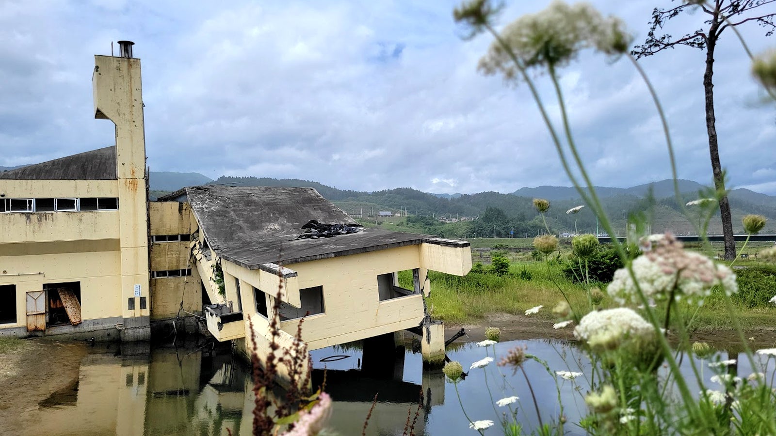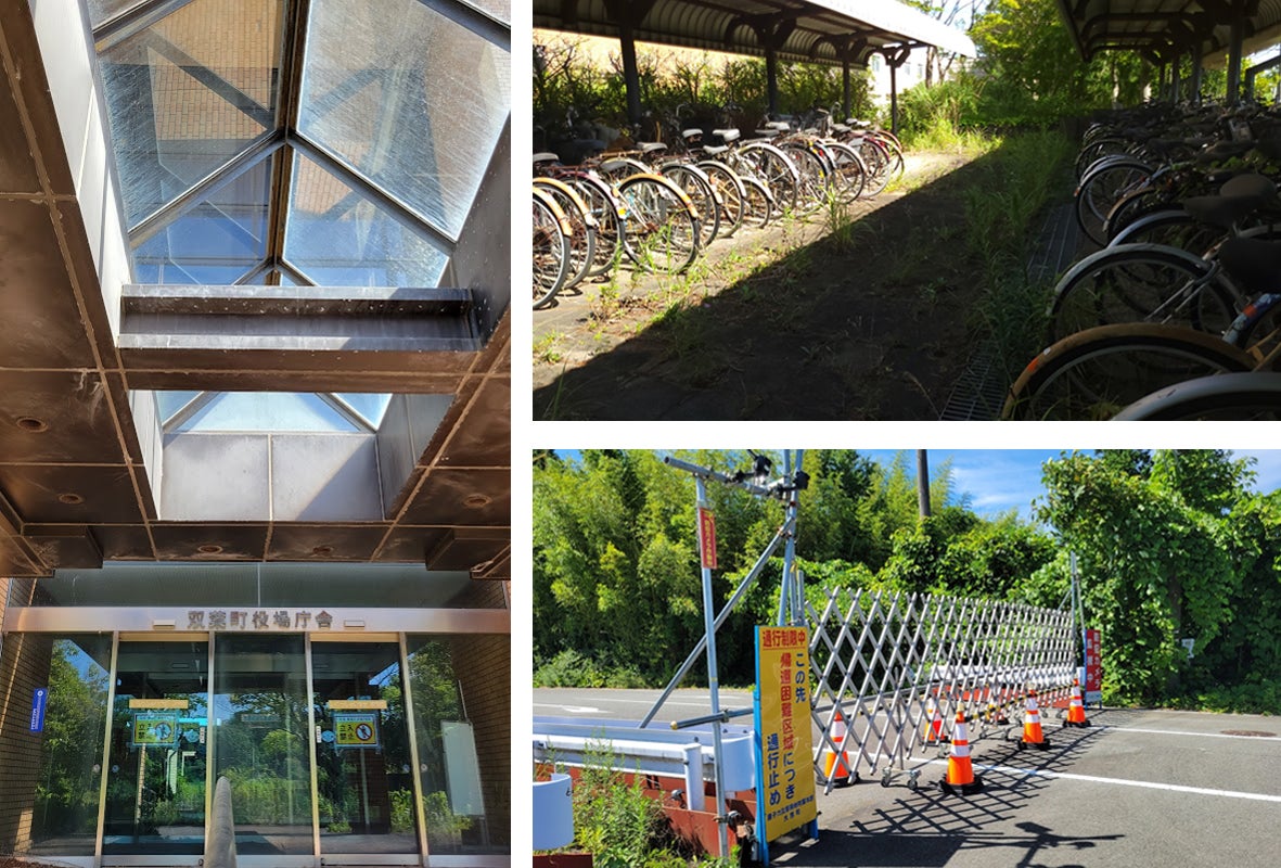 上部:福島県(双葉町)の現状。下部:岩手県(陸前高田)一本松より。