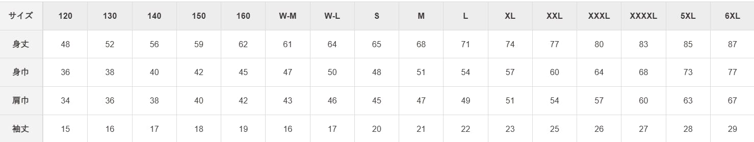 グッズリターンのサイズ展開