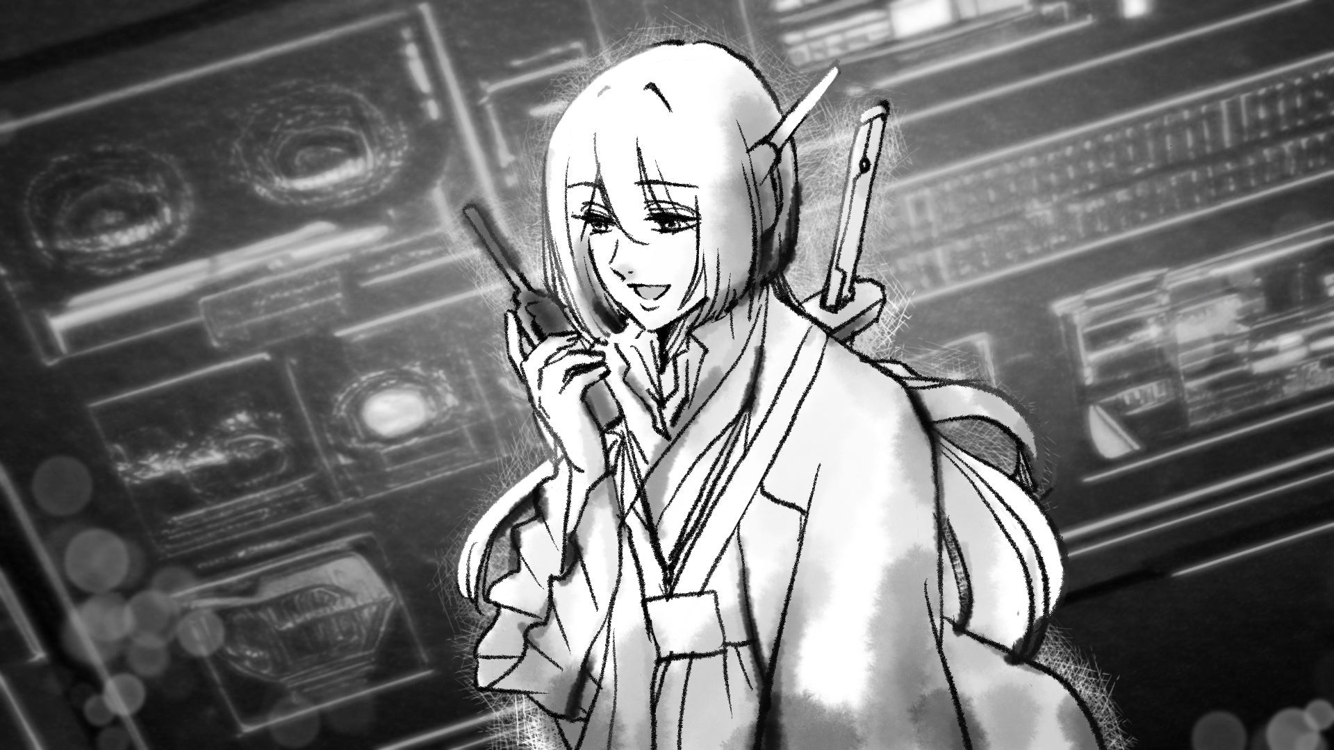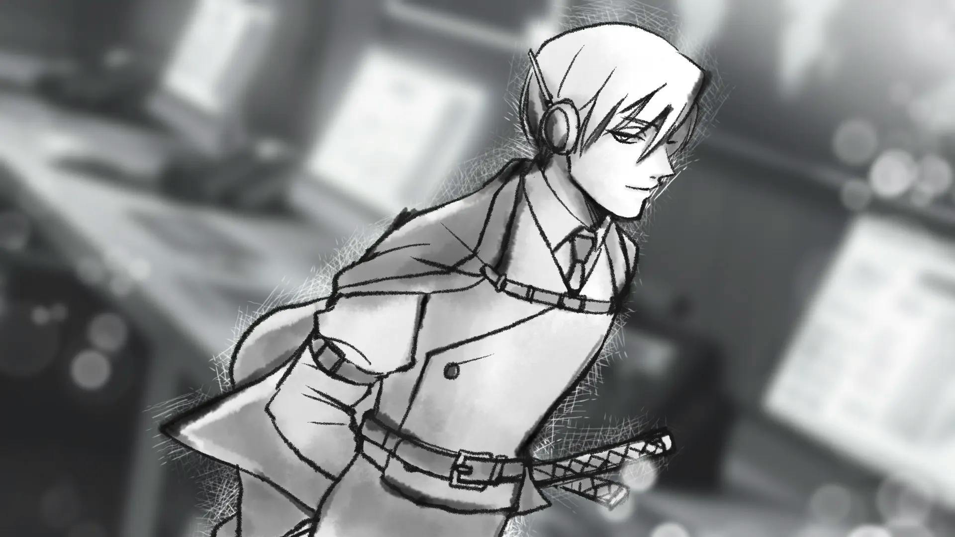 「侍団七番隊 別働班 時空情報編纂室の副班長のヒビキ•竹鶴です。私がこれからこちらの世界とあなたの世界を橋渡ししながらナビゲートさせていただきます。」