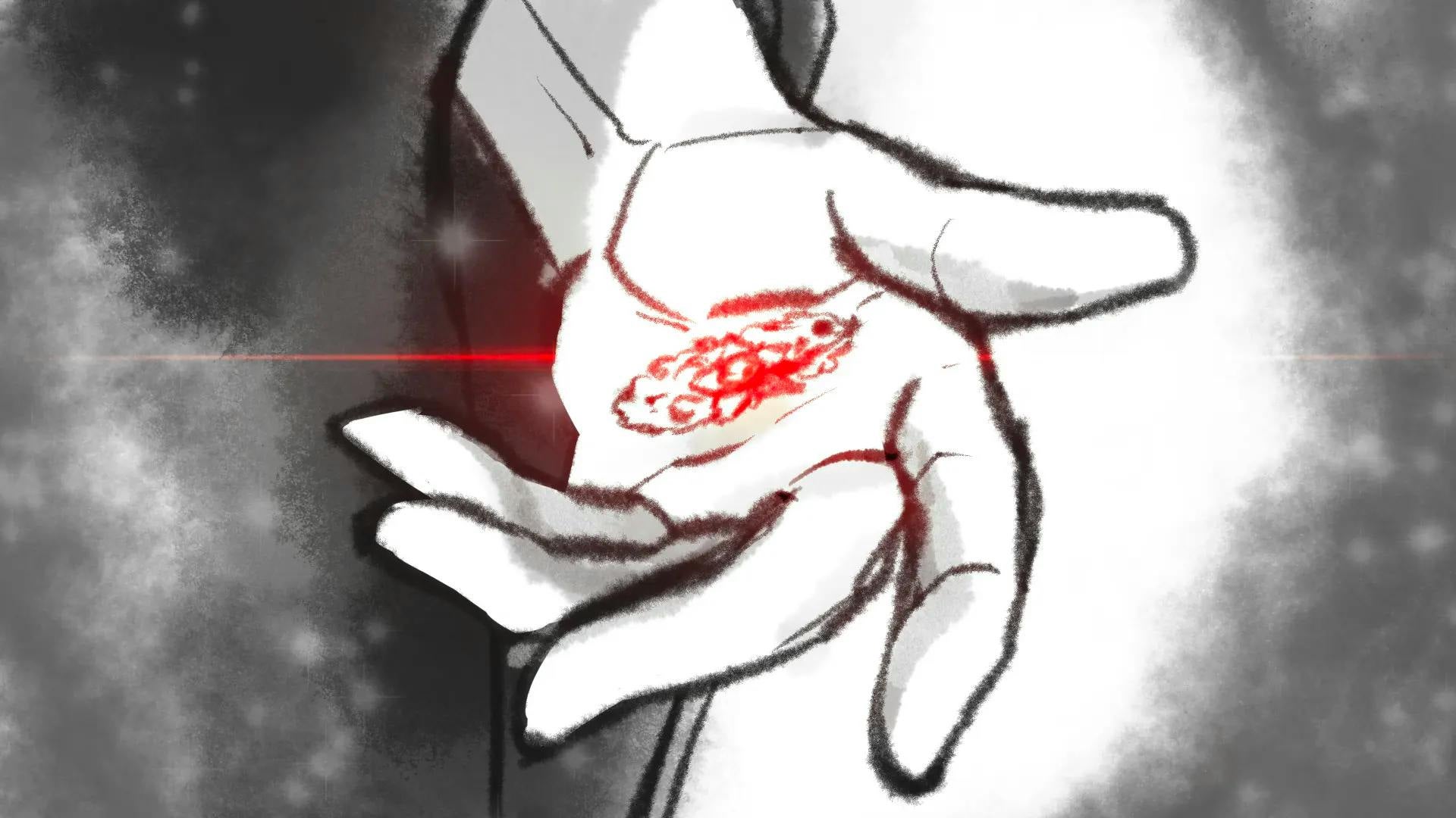 その瞬間――赤い石がふわりと淡く輝き、無数の言葉、記憶、風景があなたの意識に流れ込んでくる。