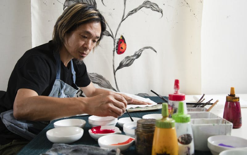 そんなナオさんが生み出す“濡れ描き友禅”は、着物を彩る日本伝統の技法。