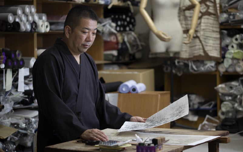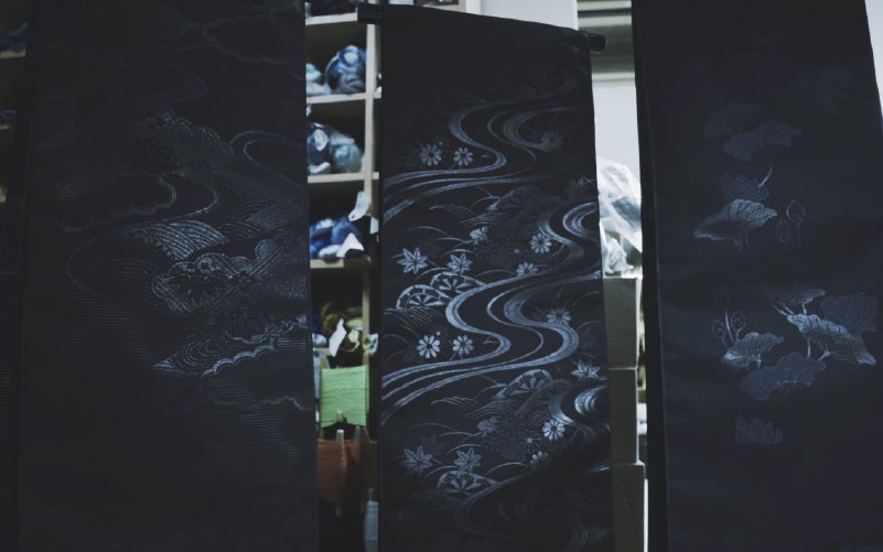 多くの織元さんが華やかな色彩の織物を手掛けるなかで、川端さんはあえて“黒”を基調とした西陣織を作り続けています。