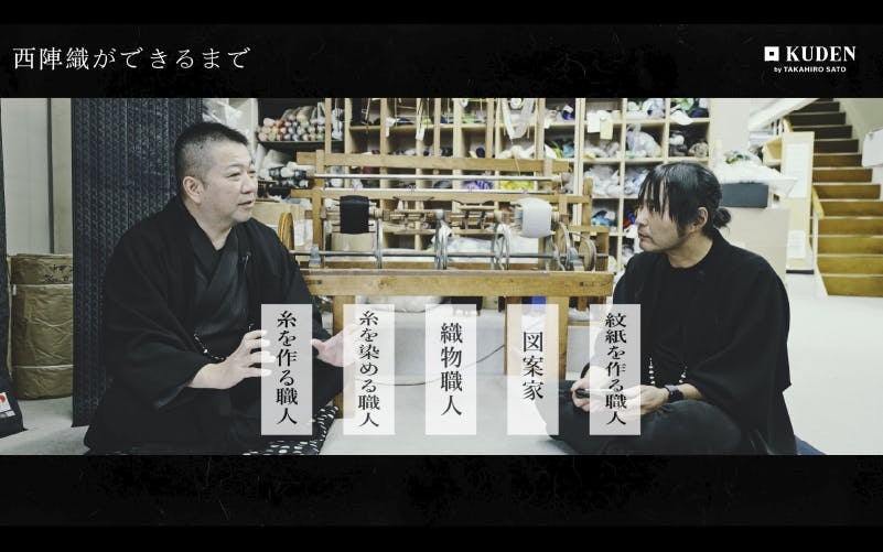 今回、川端社長、そして職人の中井さんには、長年受け継がれてきた西陣織の歴史、制作現場でのこだわり、なぜ黒にこだわるのか?そして海外展開への想いまで、僕がインタビュアーとしてお聞きして、たくさんのことを語っていただきました。