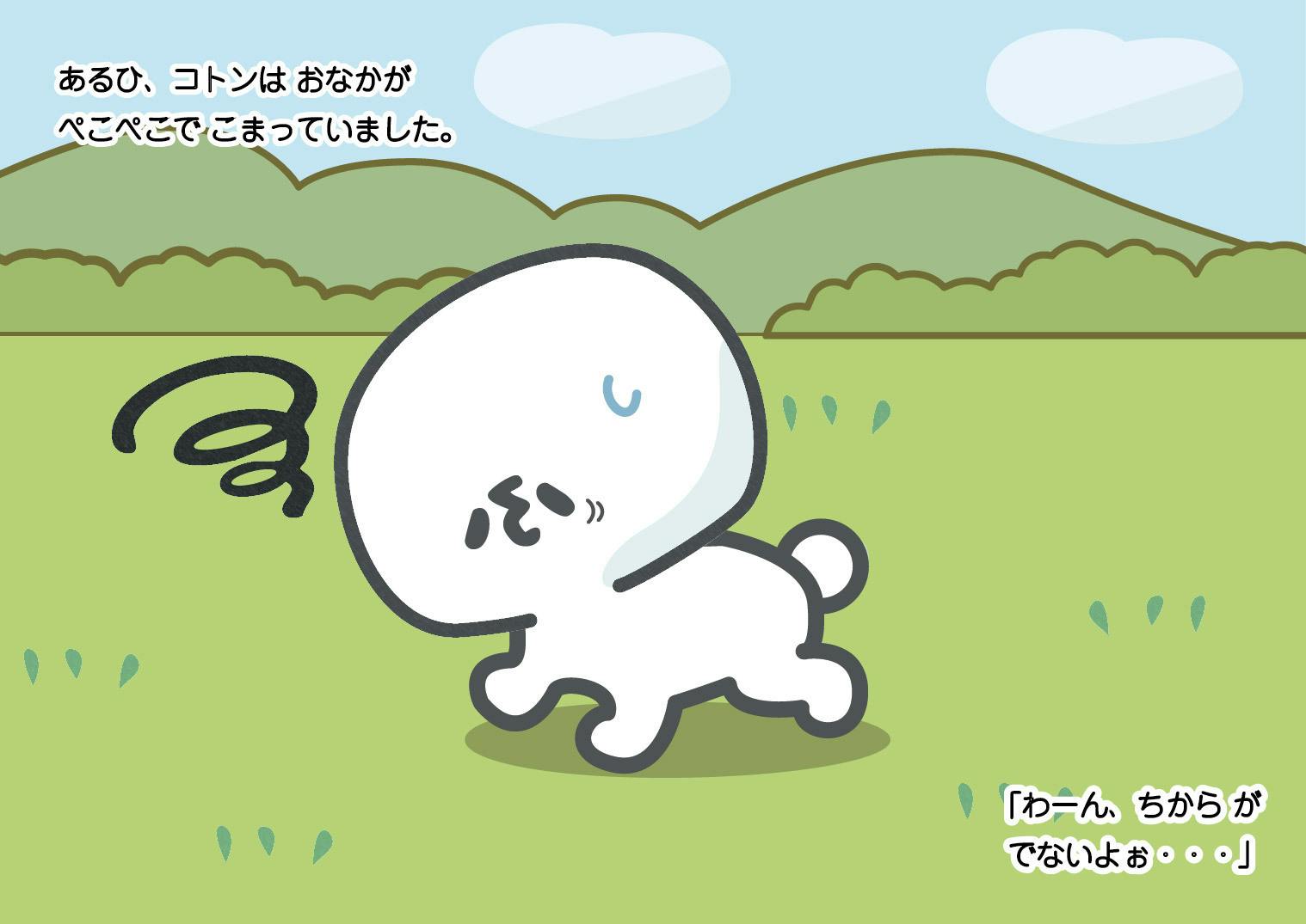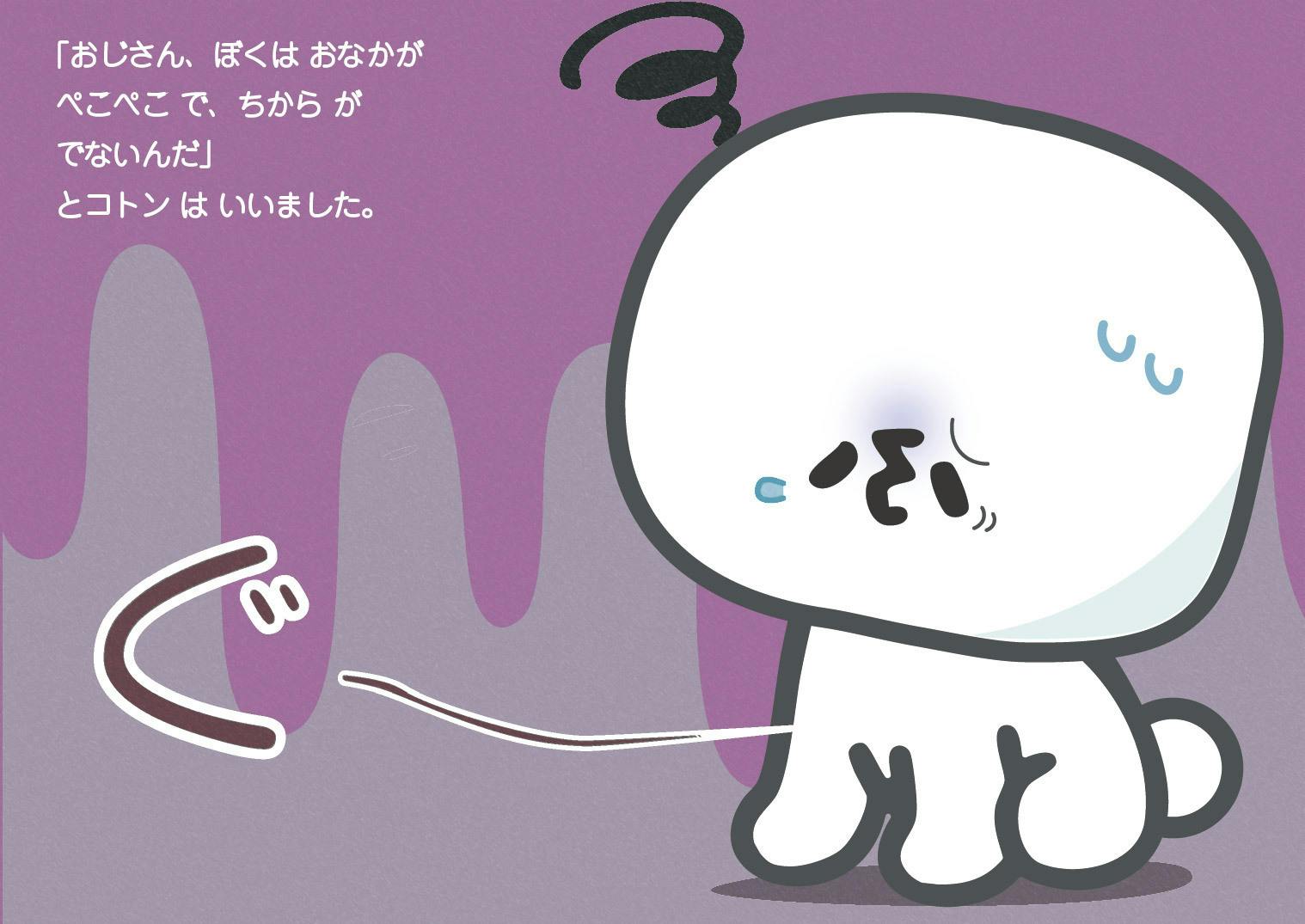 主人公コトンが、ふ菓子屋のおじさんと出会う場面です。