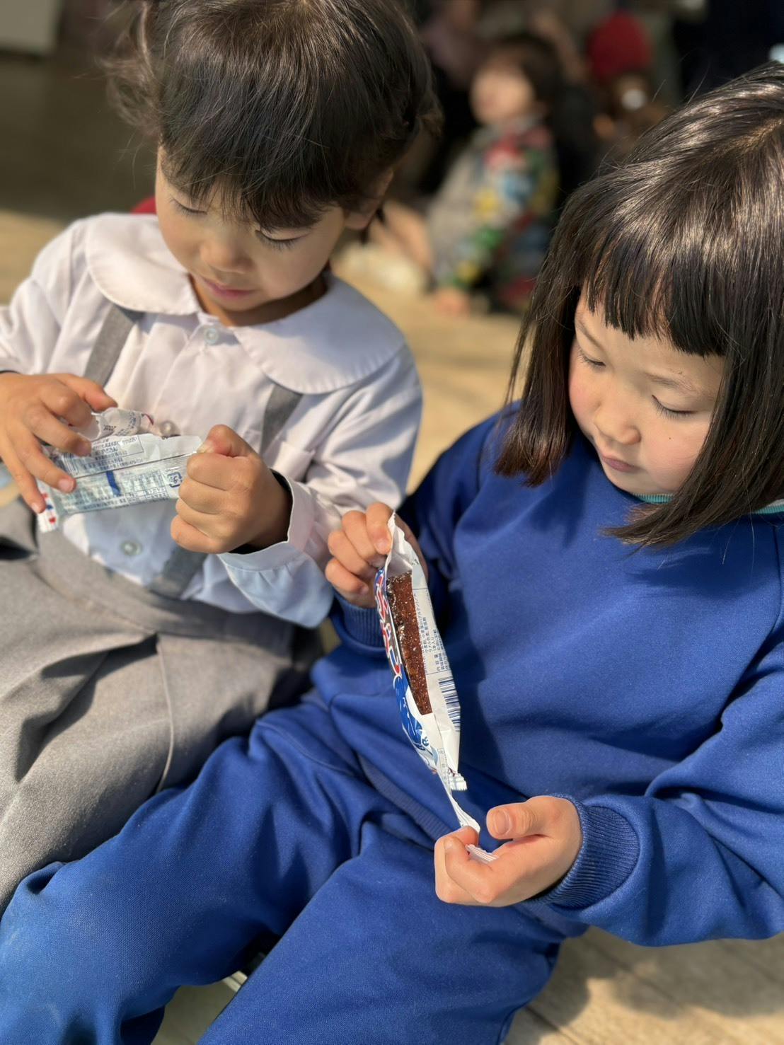 ふ菓子を初めて食べる子が多く、最初は「どんな味かな〜?」と不思議そうに食べていましたが、ひと口食べると「おいしい!」「ママと今度一緒に食べたい!」と嬉しそうに話していました。