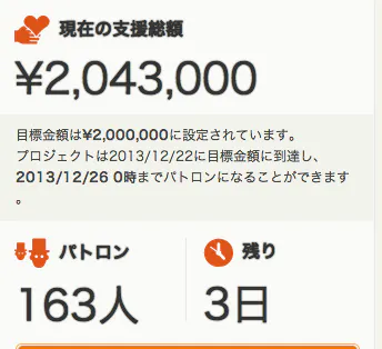 それをみたパトロンの方が、その場で残りの5万円を支援してくれました!
