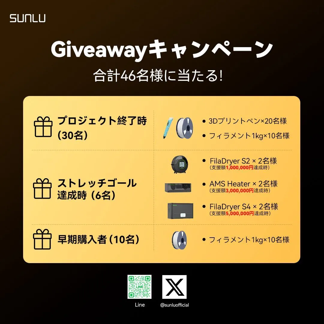 @sunluofficialをフォロー&本投稿をリポストした後SUNLU公式LINEアカウントを友達追加で応募完了です