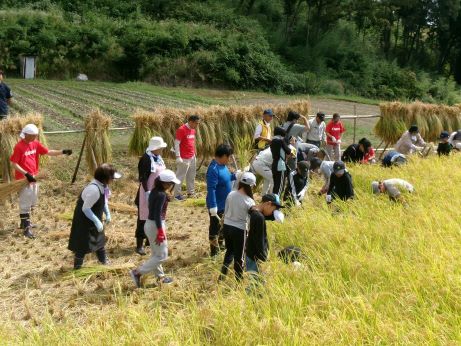 令和7年9月 棚田の補修・農地保全管理、地元小学校、地元企業、大学生団体等との交流行事の開催(稲刈り)