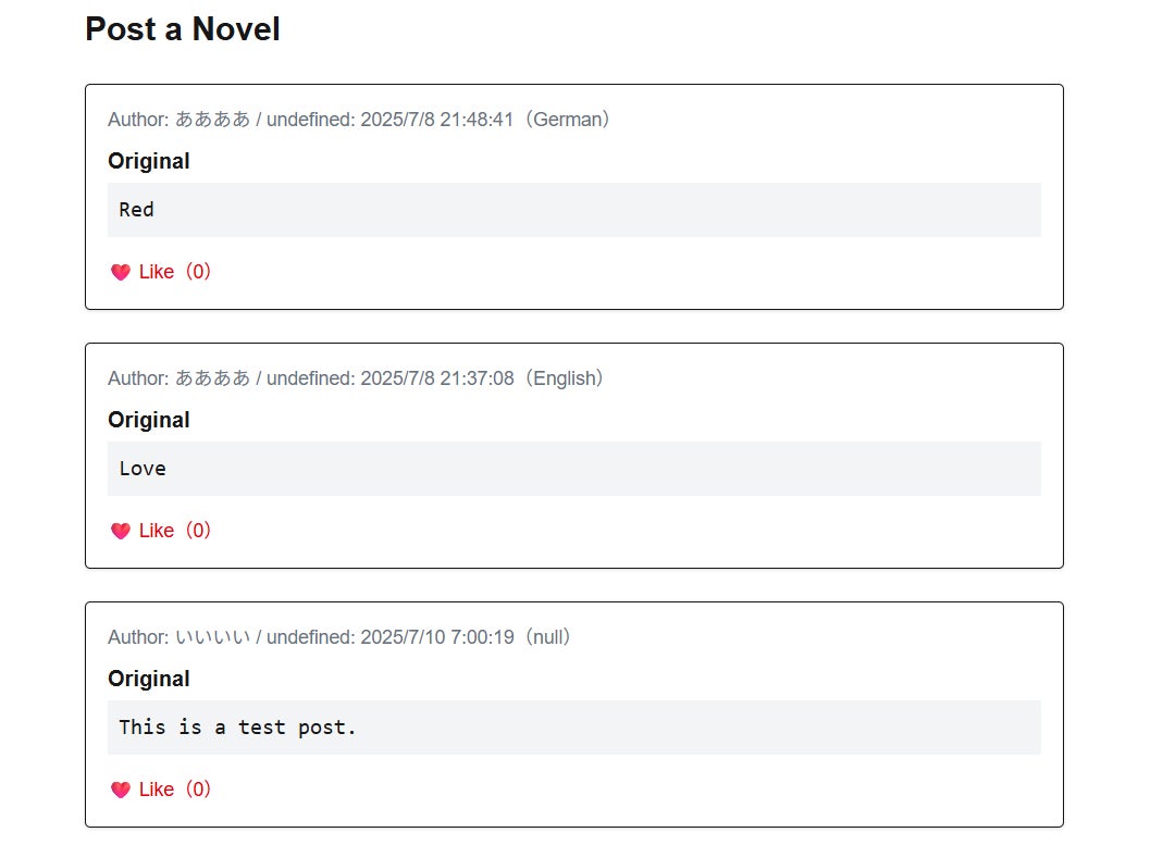 ✅ 投稿UIおよび翻訳表示画面のモック設計済(Next.js使用)