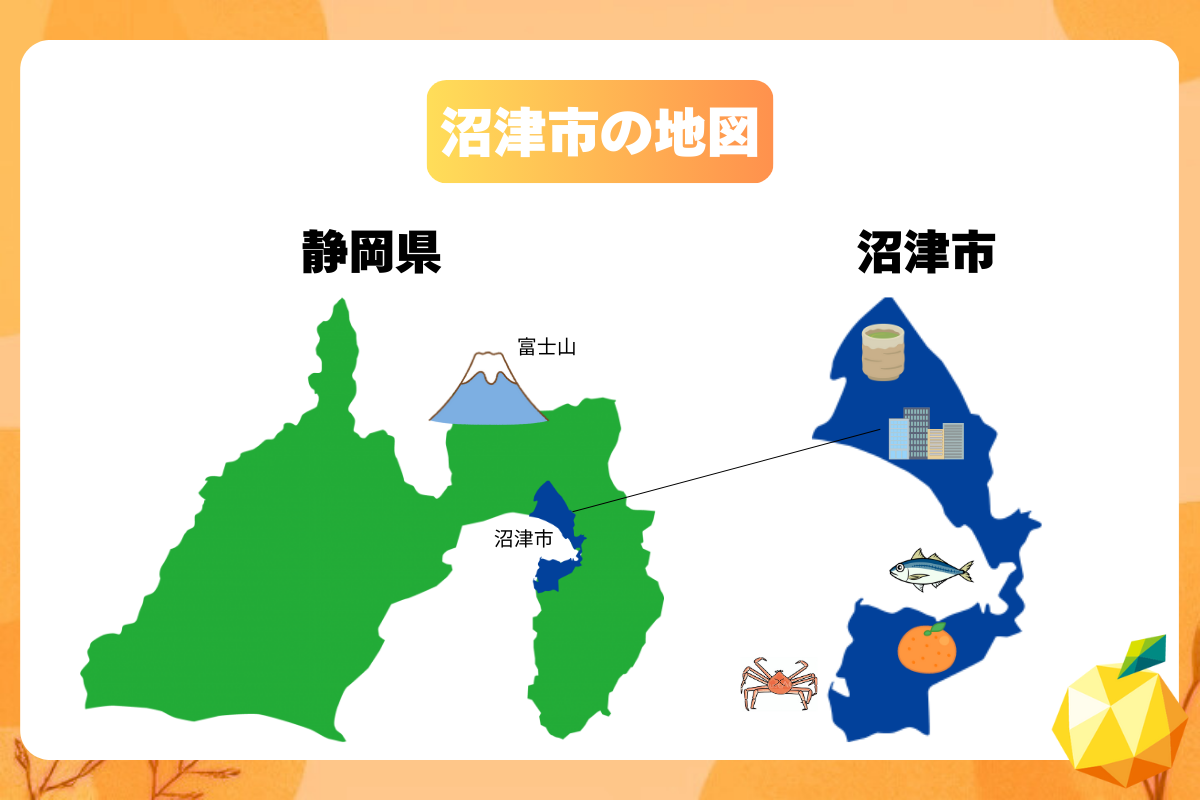 沼津市は、静岡県東部、伊豆半島の付け根にあります。