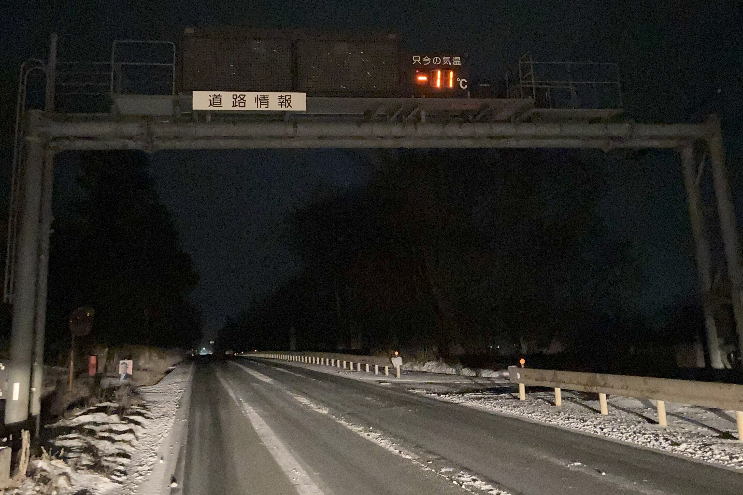 深夜の雪道をひた走る