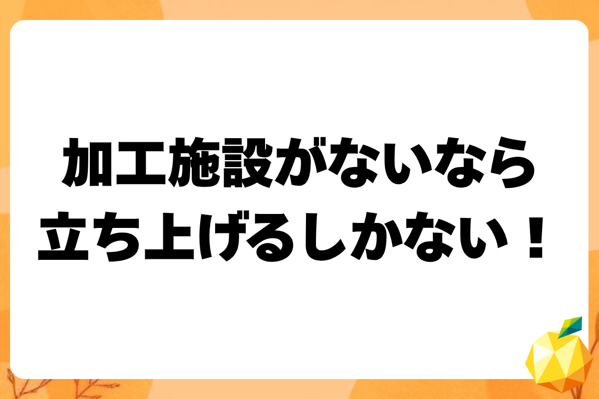 私の事業コンセプトである、規格外品のアップサイクル事業を推進しようと思っても、そもそも加工できる施設がなければ何も始まらない。