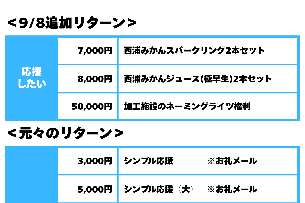 一部リターンが品切れしてしまったこともあり、リターン品を追加しました!