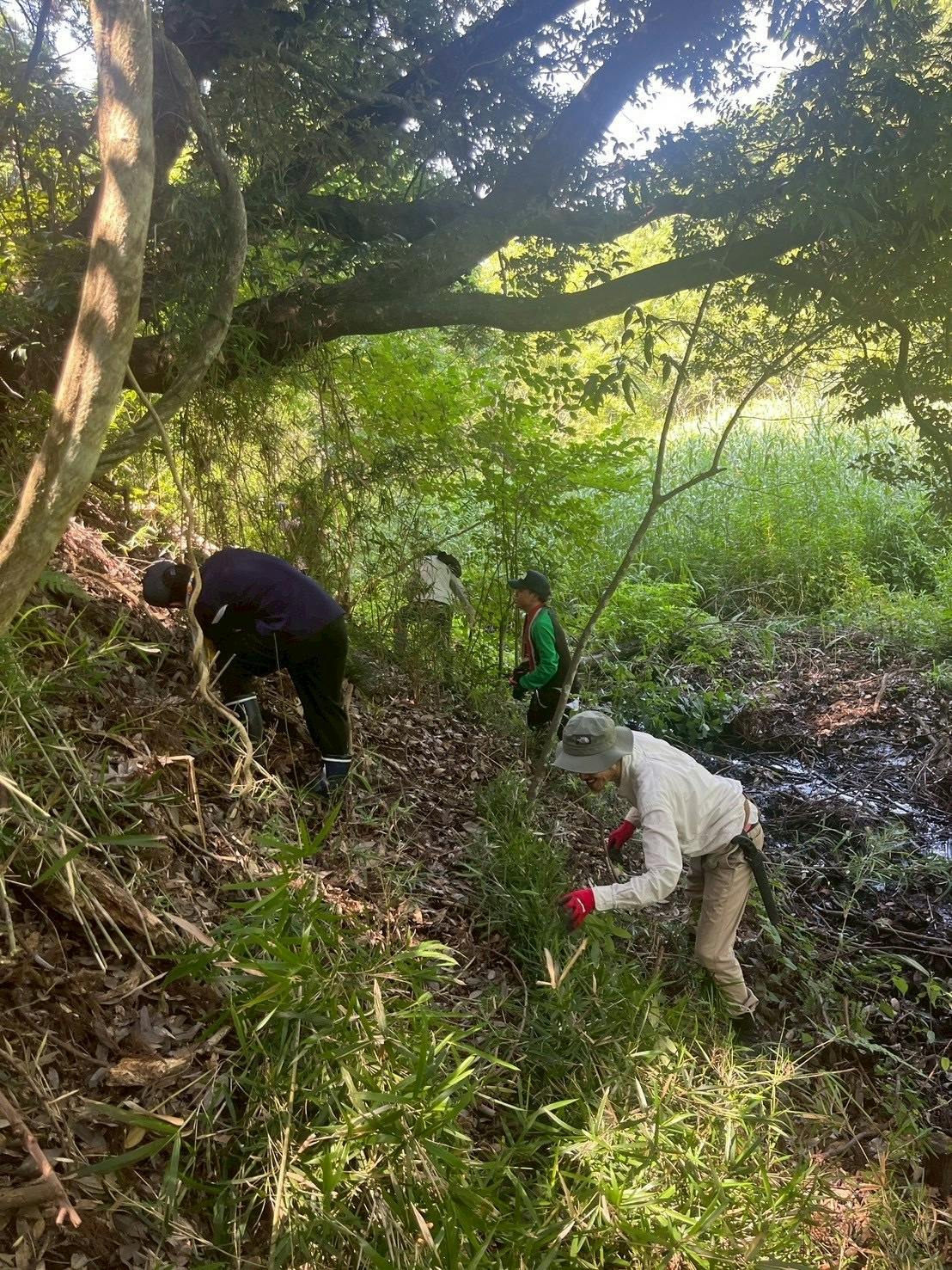 里山の生物資源を保全し、地域の観光資源として活用する地域の団体と連携した取り組み。水路の整備や地域が実施する自然観察会をサポートしています。