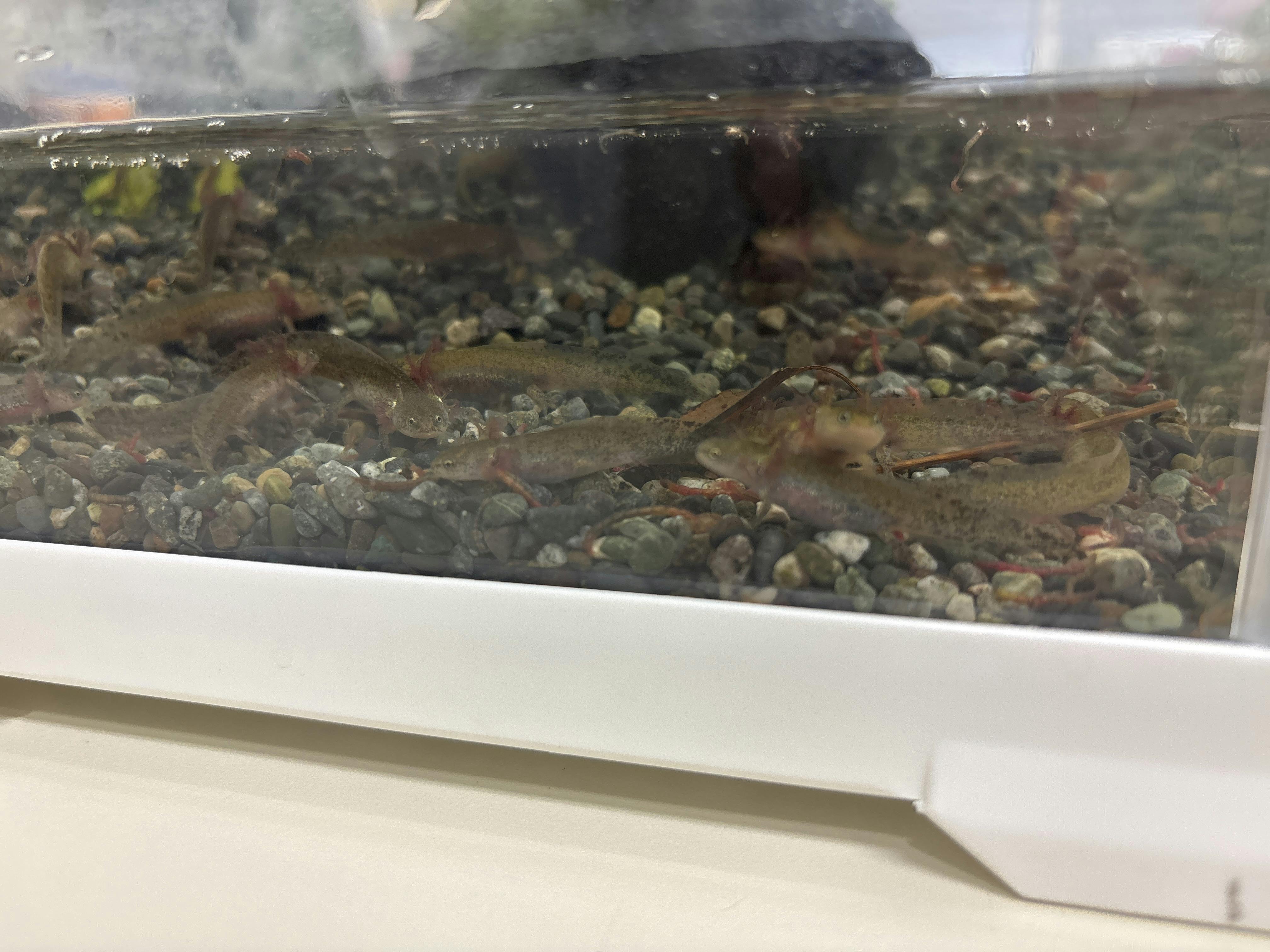希少種サンショウオの生息地保全調査や、卵を孵化させて少し大きくなるまでお世話をし、放流しました。