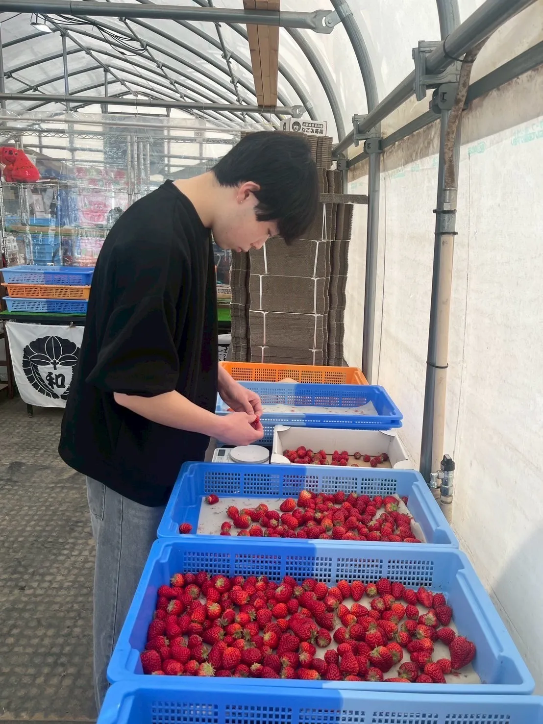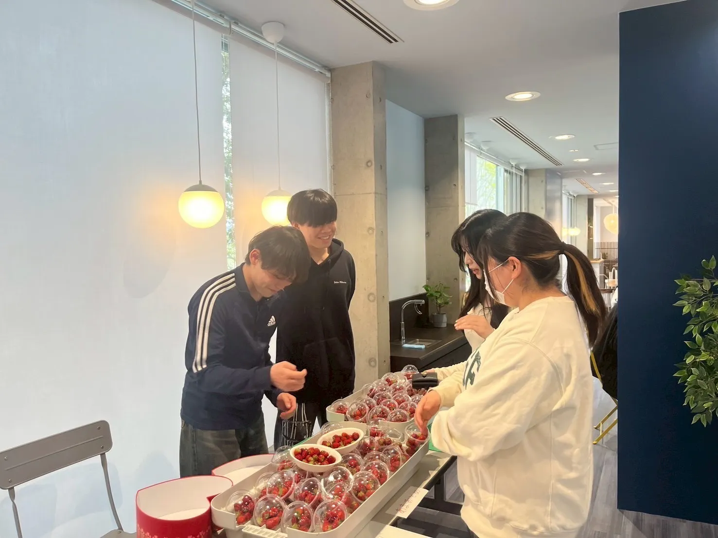 人手不足とフードロスの解消を目指し、山武市にある「なごみいちご苑」さんで積取りの補助をし、一部を大学キャンパス内で販売しました。
