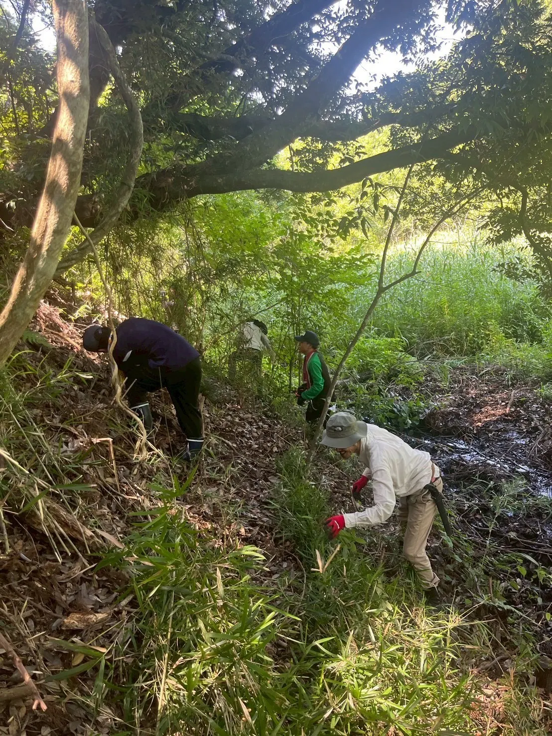 里山の生物資源を保全し、地域の観光資源として活用する地域の団体と連携した取り組み。水路の整備や地域が実施する自然観察会をサポートしています。