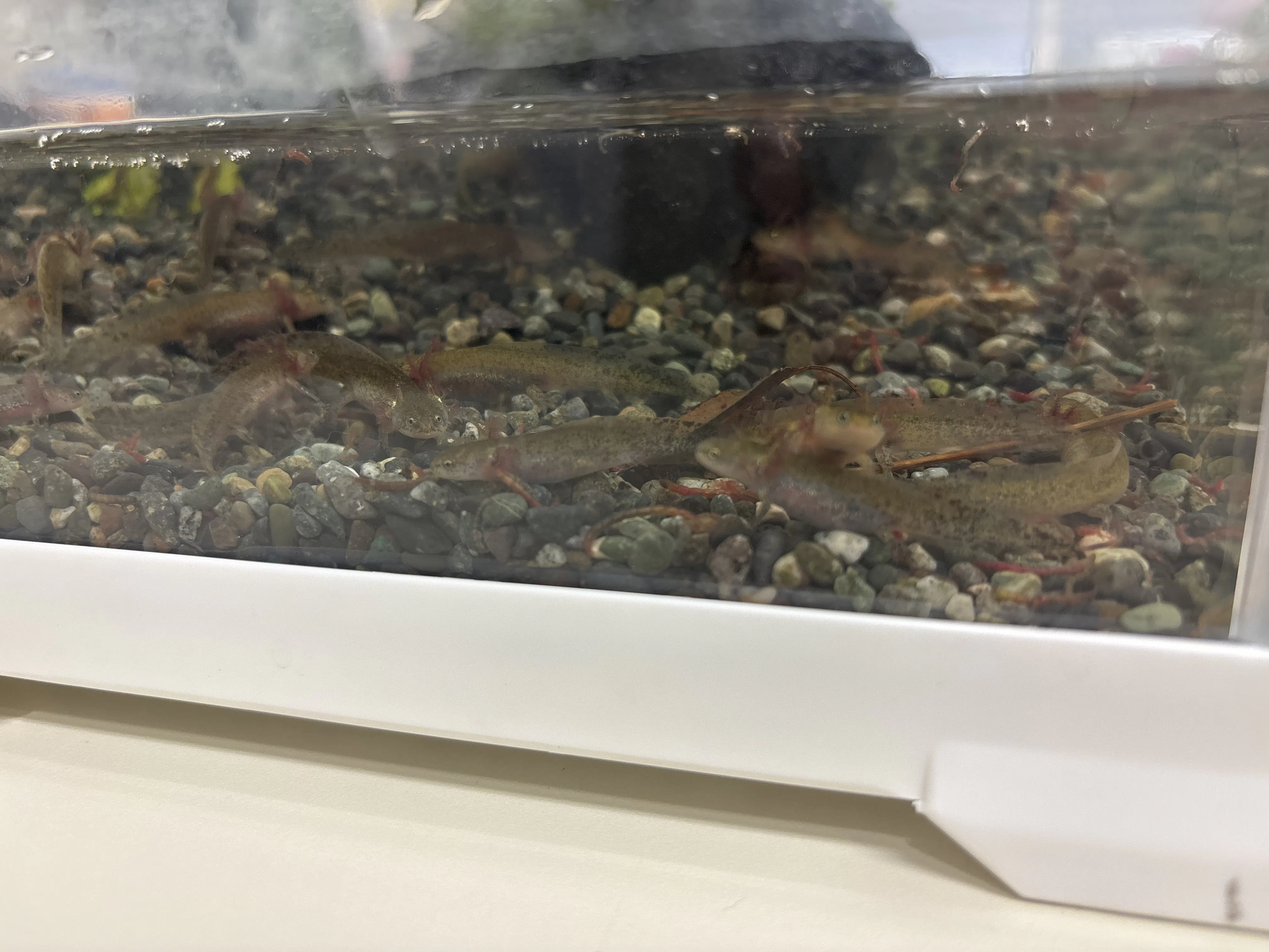 希少種サンショウオの生息地保全調査や、卵を孵化させて少し大きくなるまでお世話をし、放流しました。