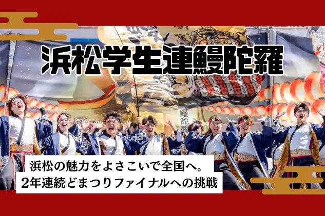 私たちは、静岡大学、静岡文化芸術大学、聖隷クリストファー大学、静岡産業大学などの浜松の学生を中心に構成された学生よさこいチームとして、地元浜松の魅力を伝えることを目的に活動してきました。