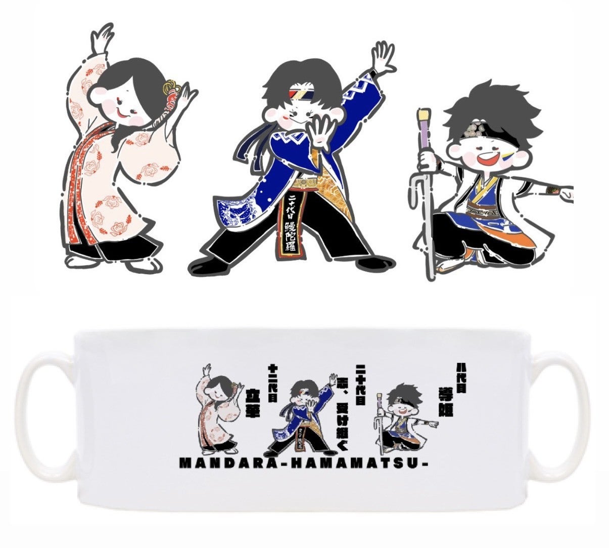 鰻陀羅の歴代どまつりファイナル出場代の衣装イラストが集まったオリジナルマグカップです!