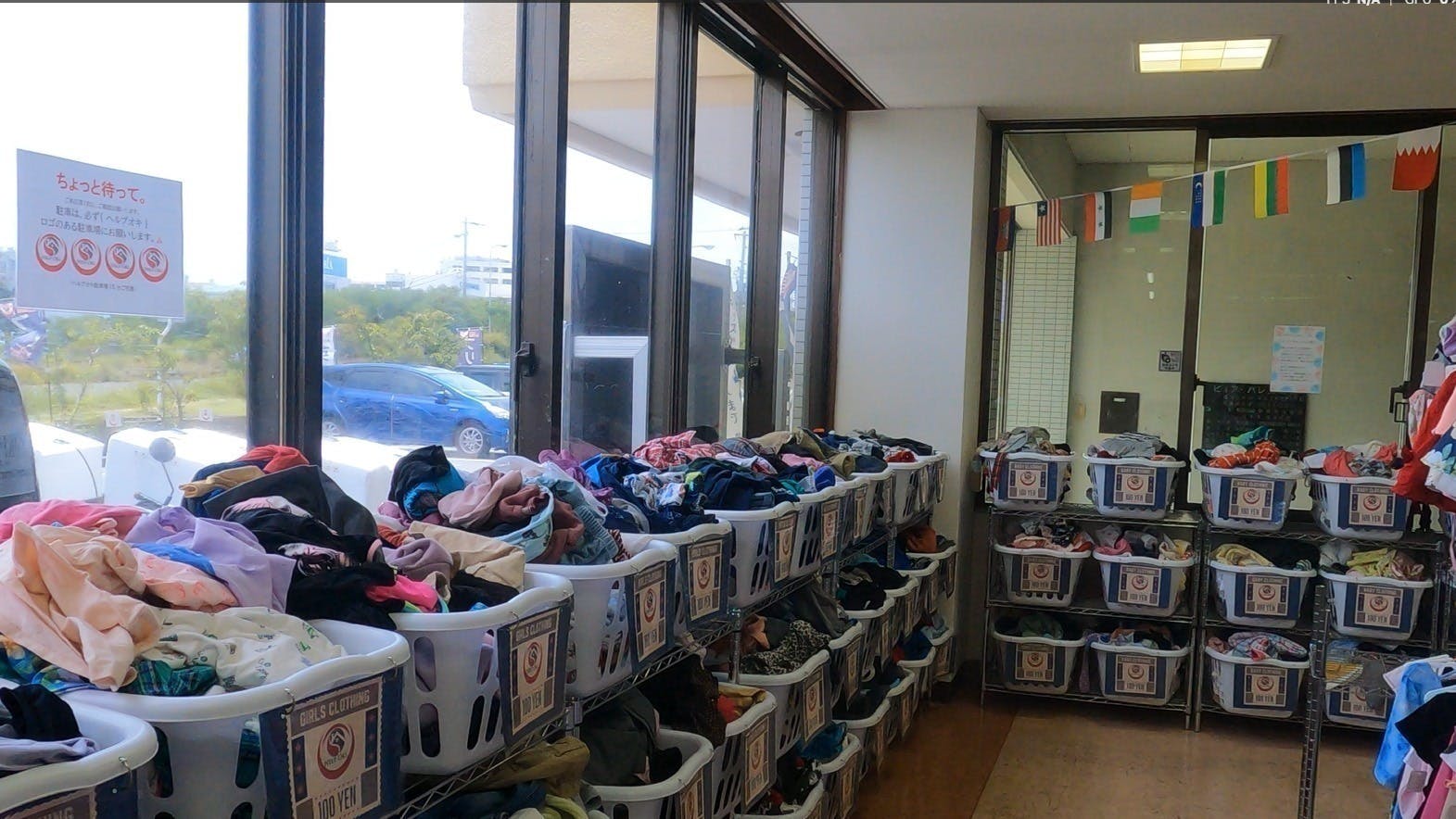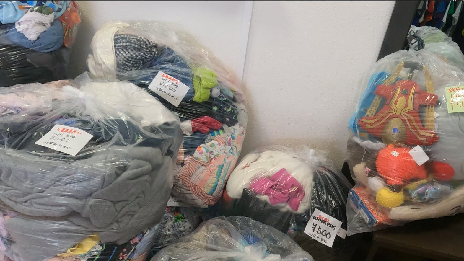 私が古着を仕入れている「HelpOki」では、現在、物価高騰と支援物資不足で、支援活動の継続が困難な状況にあります。お店に山積みされた古着の山。袋詰めで300円でも売れず、焼却されていく姿に、私は「何かできることはないか」と心を動かされました。