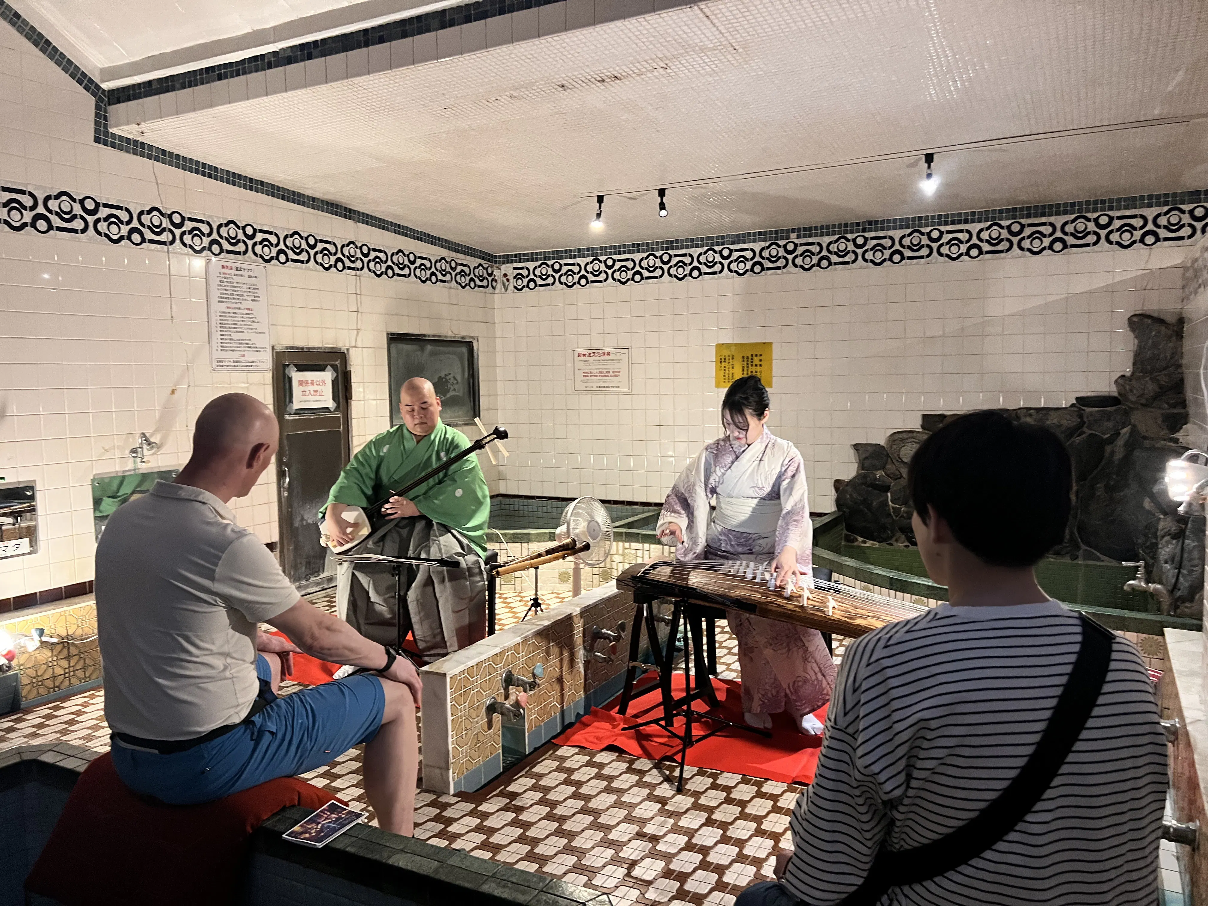 「絃 湯響 九条湯」でのFU-RANによる箏の演奏