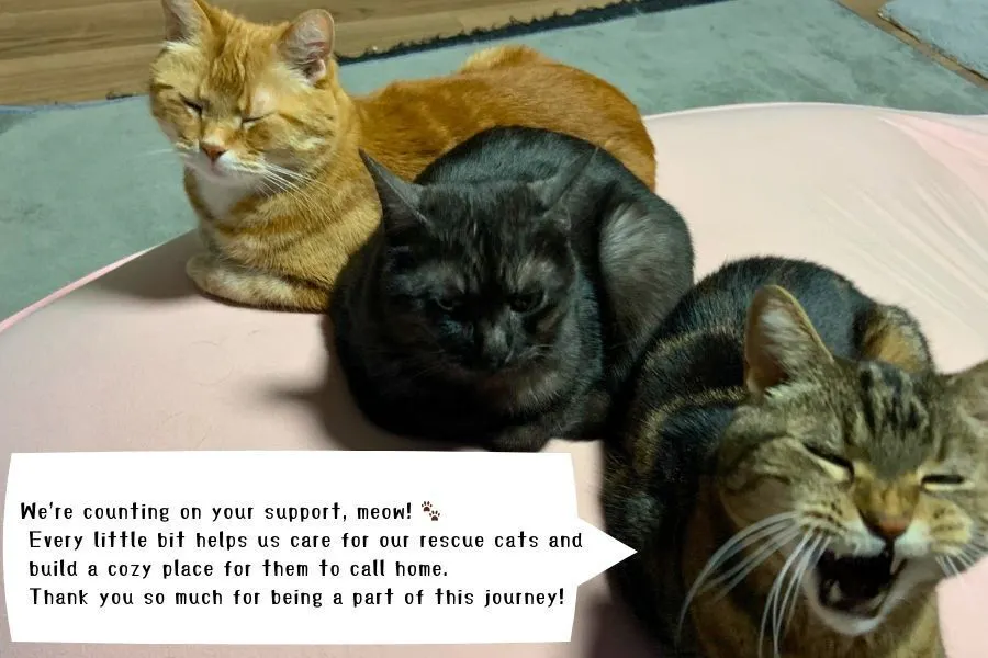 小さな支援が、確かな未来につながります。ごはん、医療費、そして「猫たちが安心して暮らせる場所」を目指して——どうか応援いただけたら嬉しいです。